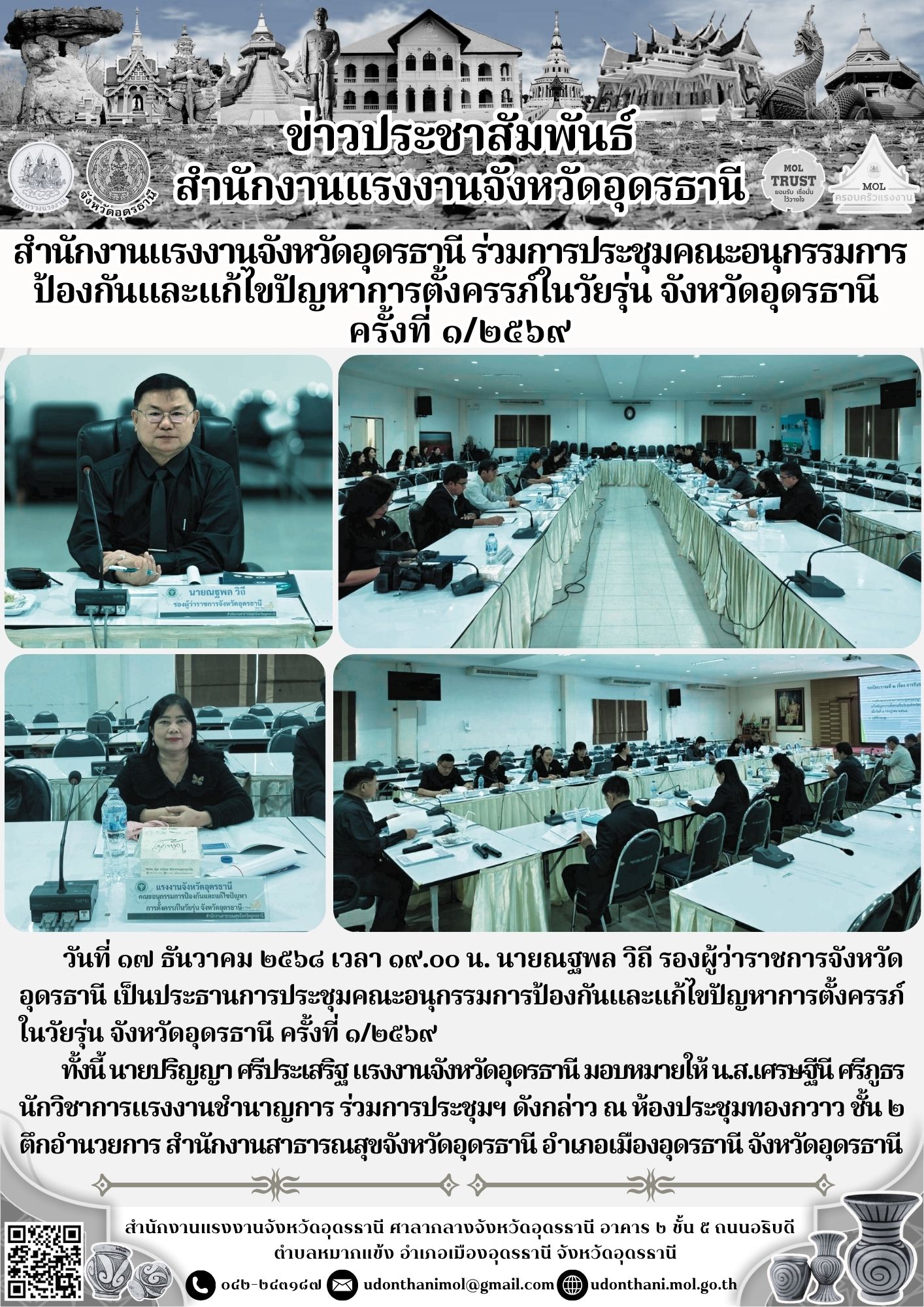 สำนักงานแรงงานจังหวัดอุดรธานี ร่วมการประชุมคณะอนุกรรมการป้องกันและแก้ไขปัญหาการตั้งครรภ์ในวัยรุ่นจังหวัดอุดรธานี ครั้งที่ ๑/๒๕๖๙