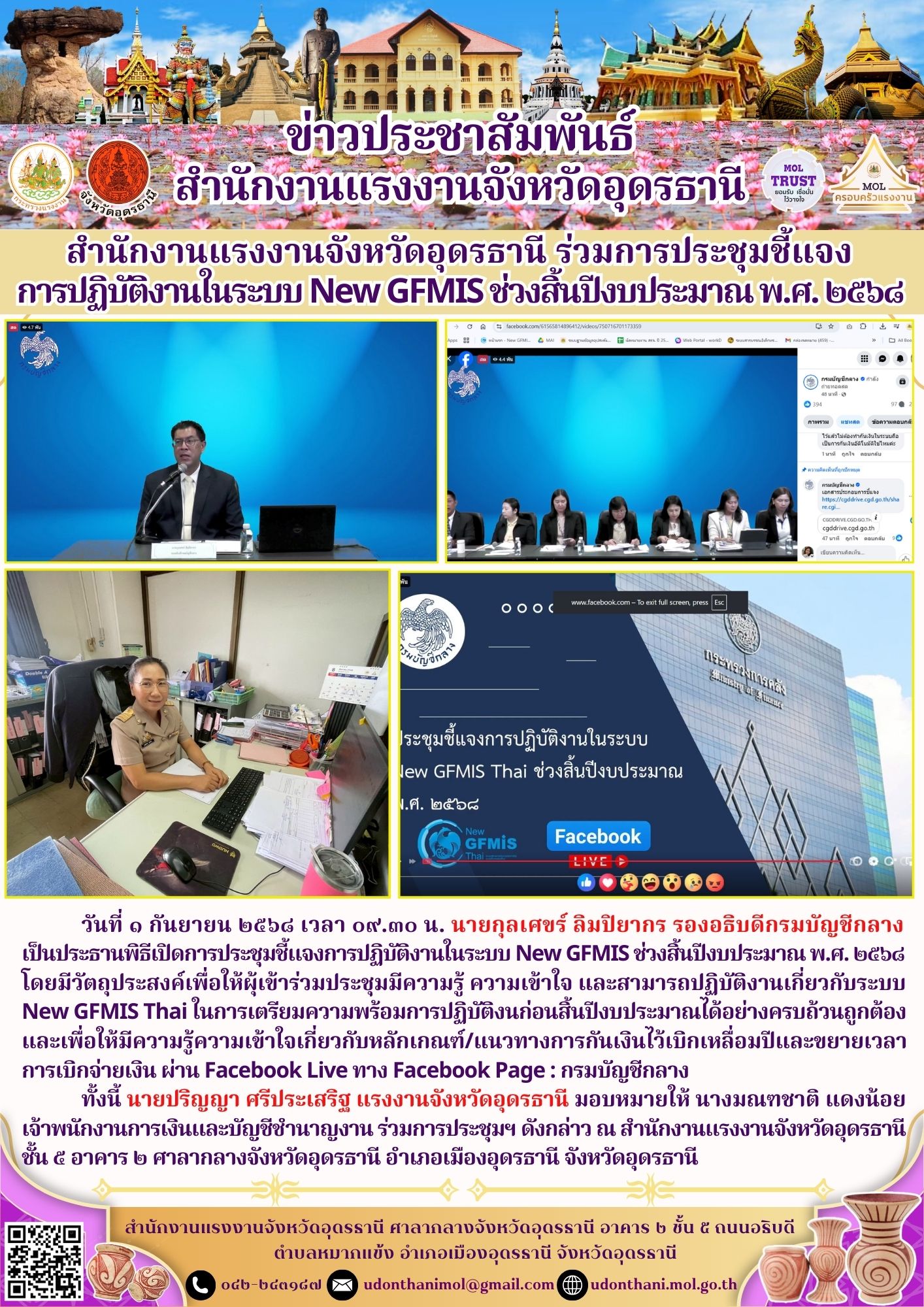 สำนักงานแรงงานจังหวัดอุดรธานี ร่วมการประชุมชี้แจงการปฏิบัติงานในระบบ New GFMIS ช่วงสิ้นปีงบประมาณ พ.ศ. ๒๕๖๘