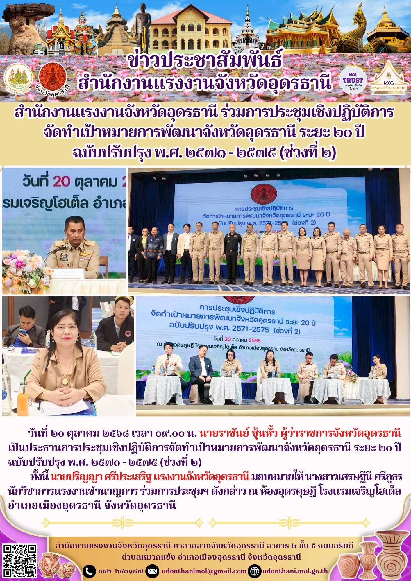 สำนักงานแรงงานจังหวัดอุดรธานี ร่วมการประชุมเชิงปฏิบัติการ จัดทำเป้าหมายการพัฒนาจังหวัดอุดรธานี ระยะ ๒๐ ปี ฉบับปรับปรุง พ.ศ. ๒๕๗๑ – ๒๕๗๕ (ช่วงที่ ๒)