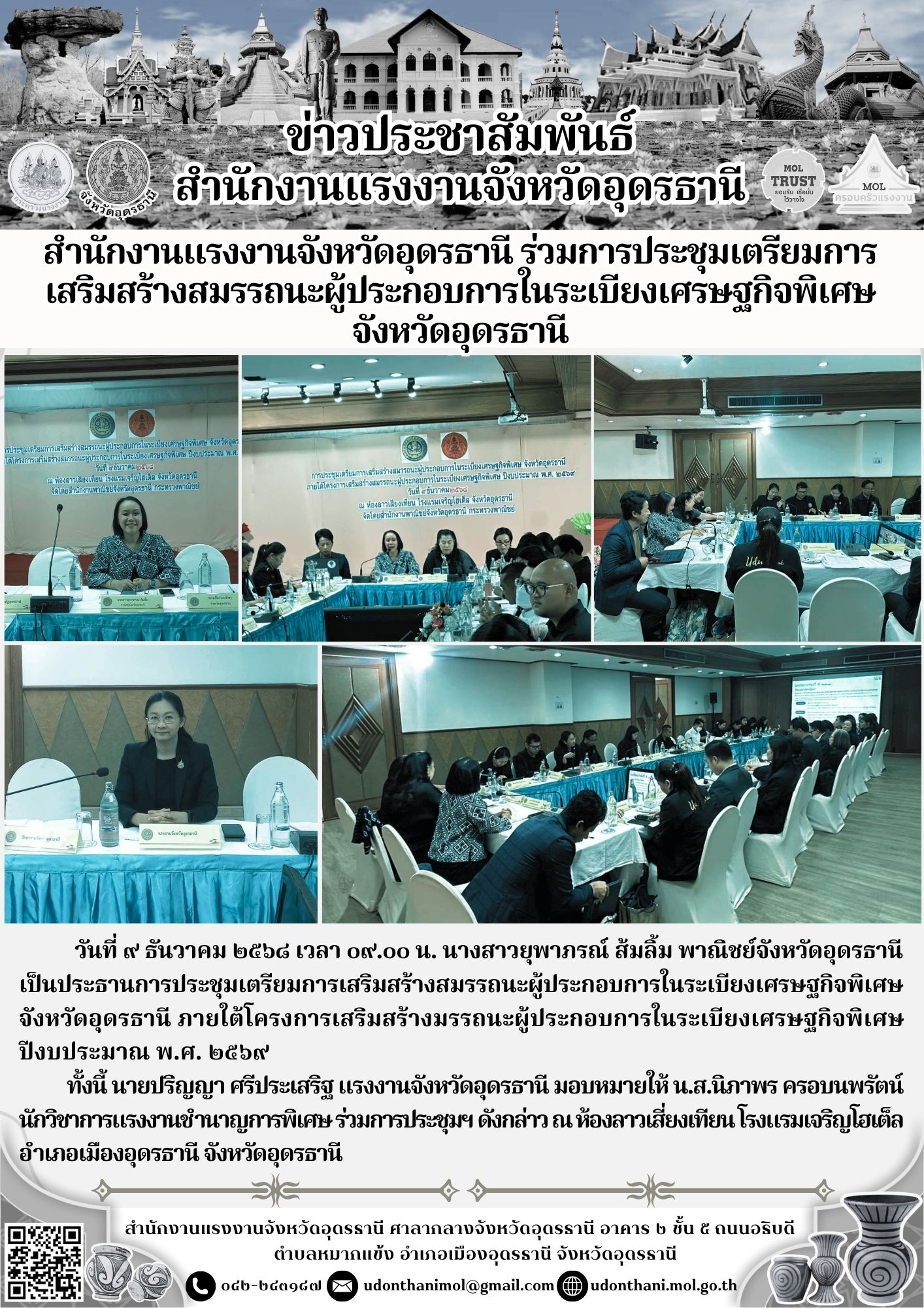 สำนักงานแรงงานจังหวัดอุดรธานี ร่วมการประชุมเตรียมการเสริมสร้างสมรรถนะผู้ประกอบการในระเบียงเศรษฐกิจพิเศษจังหวัดอุดรธานี