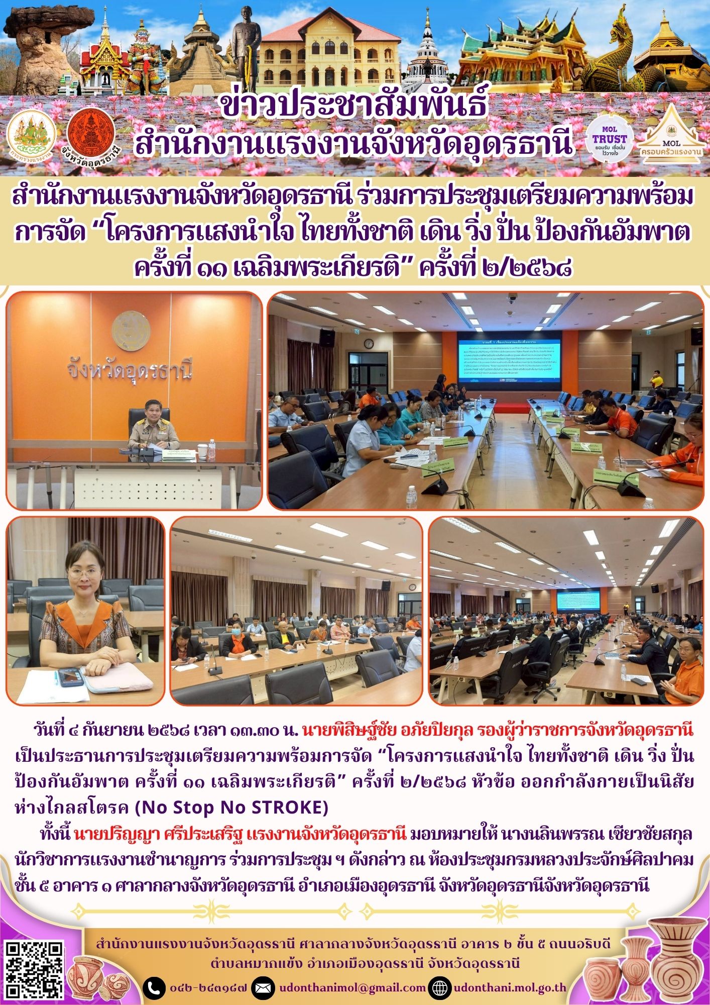 สำนักงานแรงงานจังหวัดอุดรธานี ร่วมการประชุมเตรียมความพร้อมการจัด “โครงการแสงนำใจ ไทยทั้งชาติ เดิน วิ่ง ปั่น ป้องกันอัมพาต ครั้งที่ ๑๑ เฉลิมพระเกียรติ” ครั้งที่ ๒/๒๕๖๘
