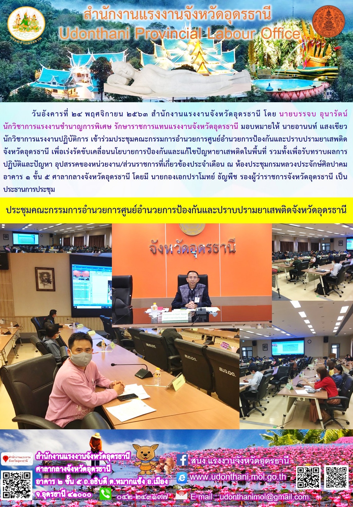 สำนักงานแรงงานจังหวัดอุดรธานี ร่วมประชุมคณะกรรมการอํานวยการศูนย์อํานวยการป้องกันและปราบปรามยาเสพติดจังหวัดอุดรธานี