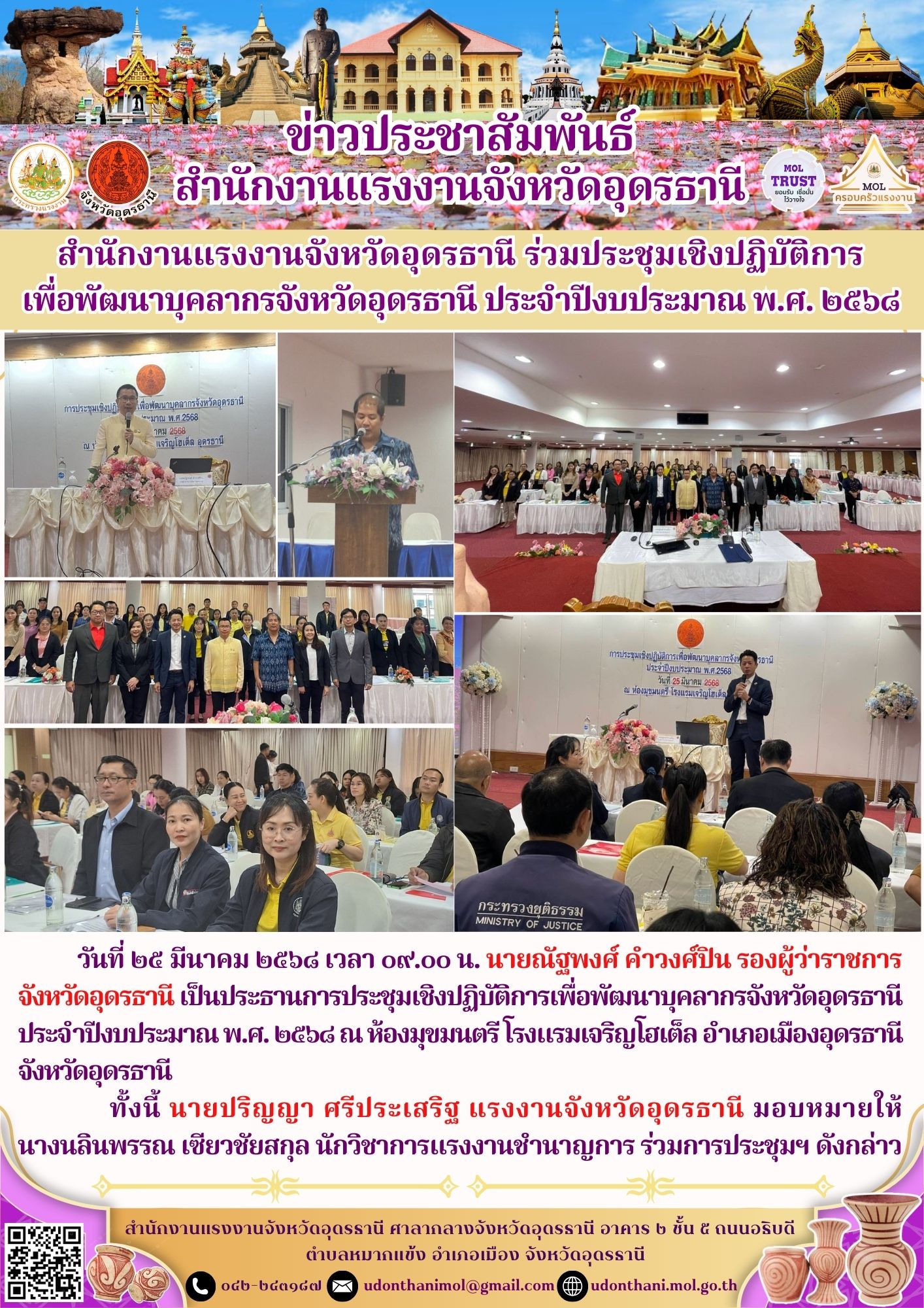 สำนักงานแรงงานจังหวัดอุดรธานี ร่วมประชุมเชิงปฏิบัติการเพื่อพัฒนาบุคลากรจังหวัดอุดรธานี ประจำปีงบประมาณ พ.ศ. ๒๕๖๘