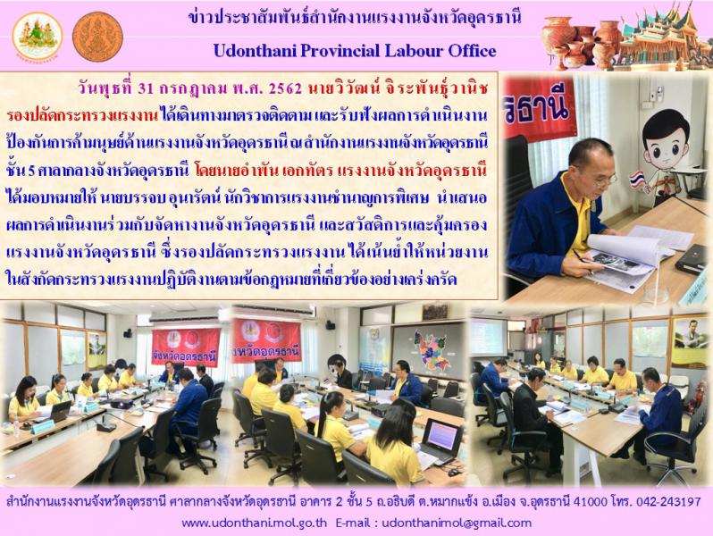 สำนักงานแรงงานจังหวัดอุดรธานี เข้ารับการตรวจติดตามและรับฟังผลการดำเนินงานป้องกันการค้ามนุษย์ด้านแรงงานจังหวัดอุดรธานีโดย นายวิวัฒน์ จิระพันธุ์วานิช รองปลัดกระทรวงแรงงาน