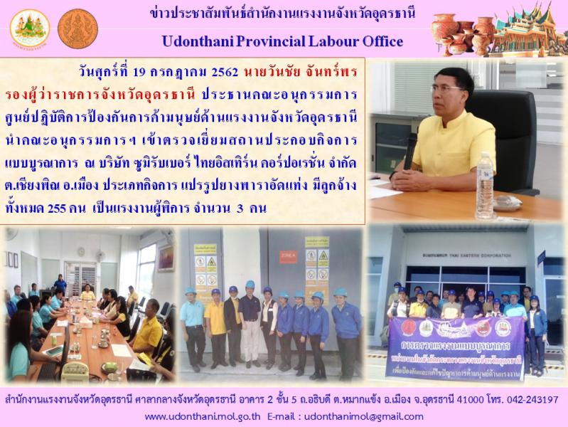 สำนักงานแรงงานจังหวัดอุดรธานี เข้าร่วมการตรวจเยี่ยมสถานประกอบกิจการแบบบูรณาการ ณ บริษัท ซูมิรับเบอร์ ไทยอีสเทิร์น คอร์ปอเรชั่น จำกัด ต.เชียงพิณ อ.เมือง จ.อุดรธานี
