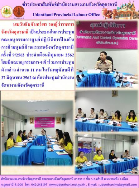 สำนักงานแรงงานจังหวัดอุดรธานี เข้าร่วมการประชุมคณะอนุกรรมการศูนย์ปฏิบัติการป้องกันการค้ามนุษย์ด้านแรงงานจังหวัดอุดรธานี ครั้งที่ 9/2562 ประจำเดือนมิถุนายน 2562