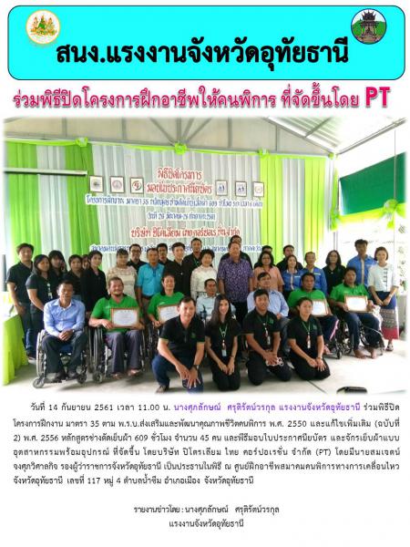 สำนักงานแรงงานจังหวัดอุทัยธานี ร่วมพิธีปิดโครงการฝึกอาชีพให้คนพิการ