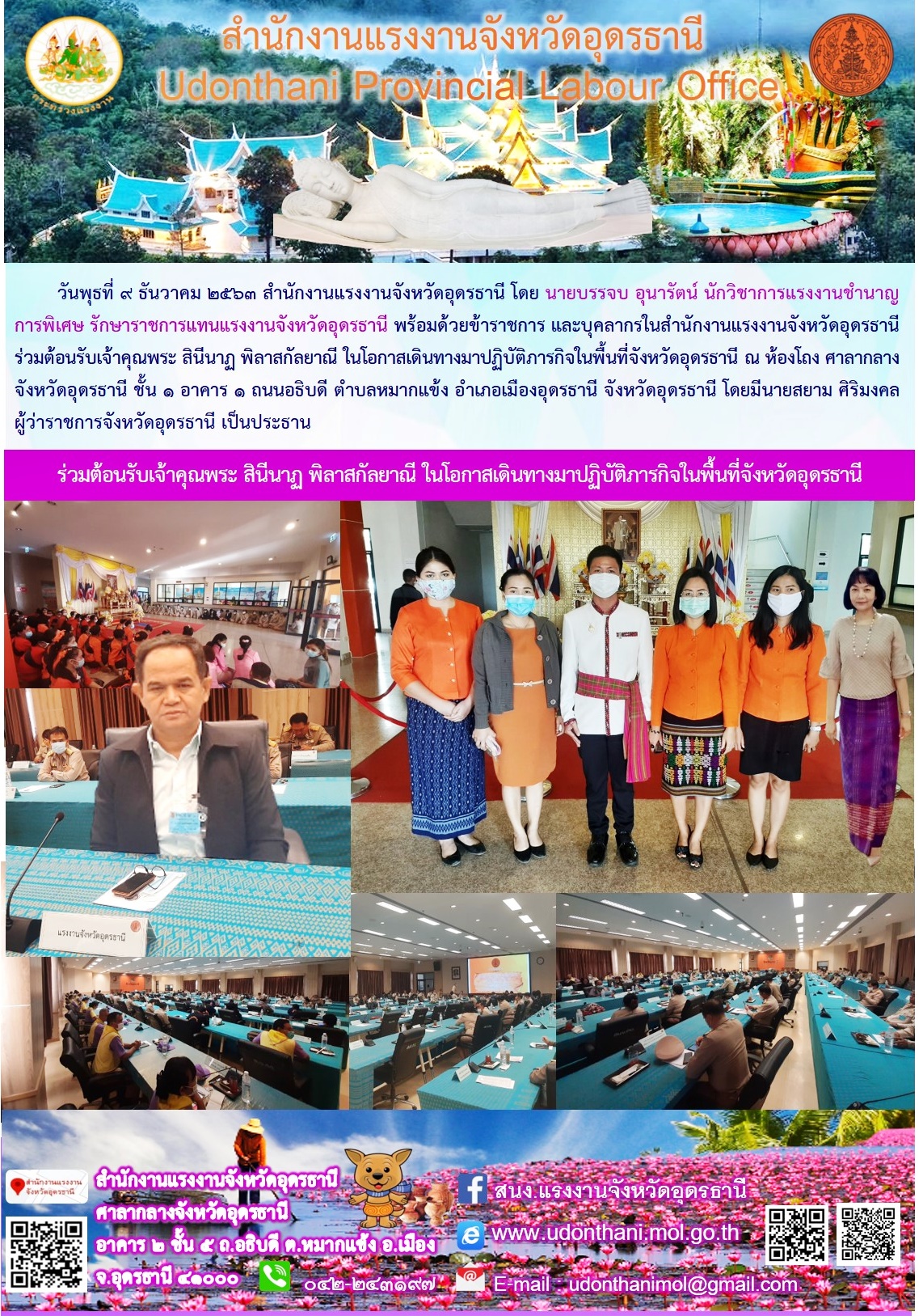 สำนักงานแรงงานจังหวัดอุดรธานี ร่วมต้อนรับเจ้าคุณพระ สินีนาฏ พิลาสกัลยาณี ในโอกาสเดินทางมาปฏิบัติภารกิจในพื้นที่จังหวัดอุดรธานี
