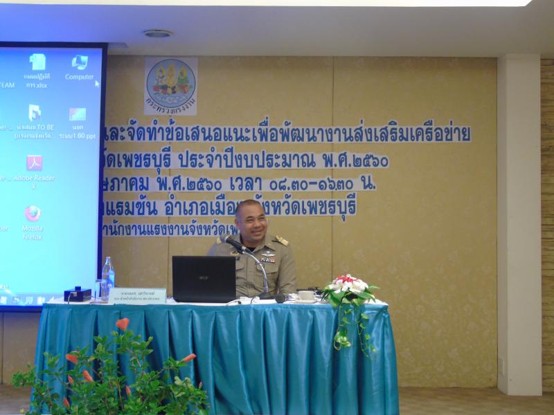 สำนักงานแรงงานจังหวัดเพชรบุรี (โดย นางสาวปภาดา บุณยงามปรีดี) จัดประชุมโครงการประชุมแลกเปลี่ยนเรียนรู้และจัดทำข้อเสนอแนะเพื่อพัฒนางานส่งเสริมเครือข่ายต้านภัยยาเสพติดจังหวัดเพชรบุรี ประจำปีงบประมาณ พ.ศ.2560 วันอังคารที่ 30 พฤษภาคม พ.ศ.2560 เวลา 08.30 – 16.30 น. ณ ห้องประชุมโรงแรมซัน อเมือง จ.เพชรบุรี
