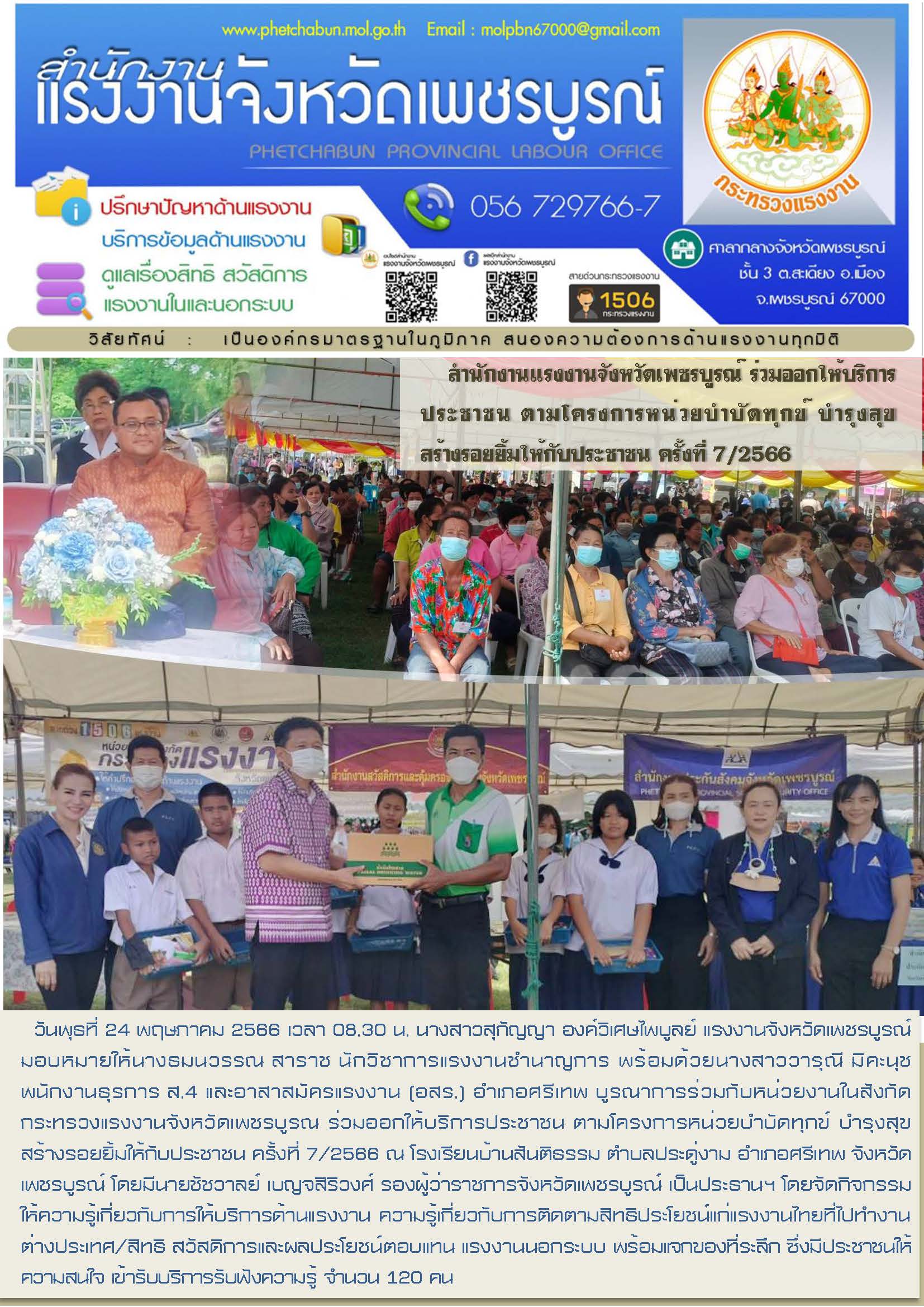 สรจ.เพชรบูรณ์ ร่วมออกให้บริการประชาชน ตามโครงการหน่วยบำบัดทุกข์ บำรุงสุข สร้างรอยยิ้มให้กับประชาชน ครั้งที่ 7/2566