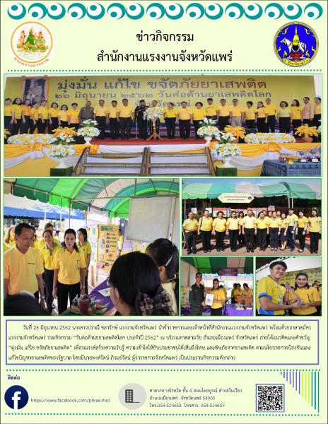 สำนักงานแรงงานจังหวัดแพร่ ร่วมกิจกรรม “วันต่อต้านยยาเสพติดโลก ประจำปี 2562”