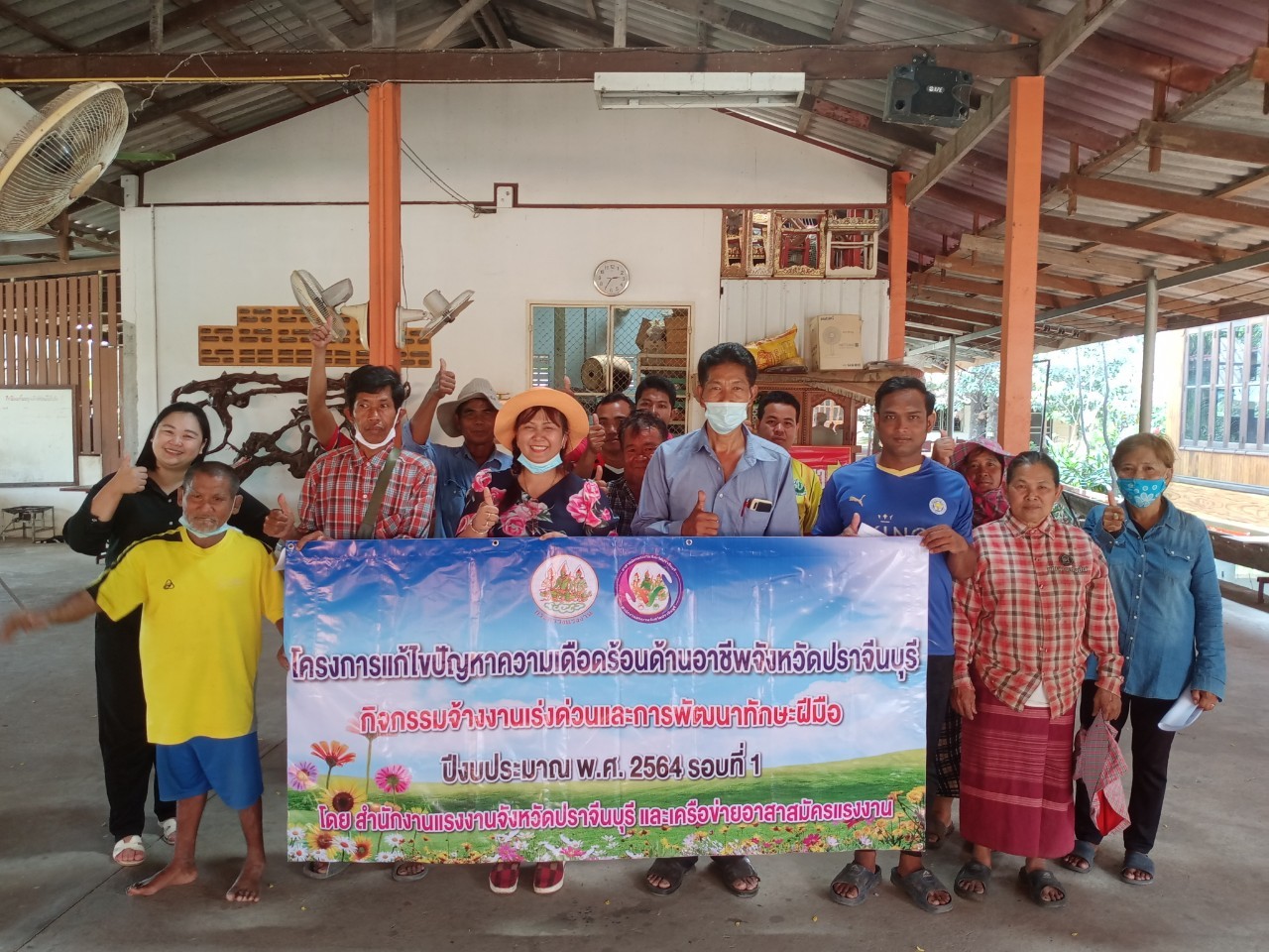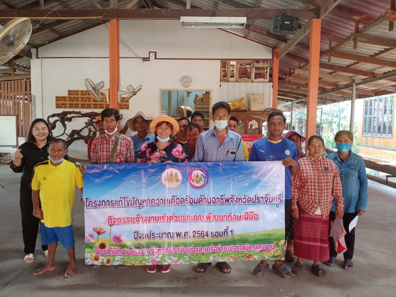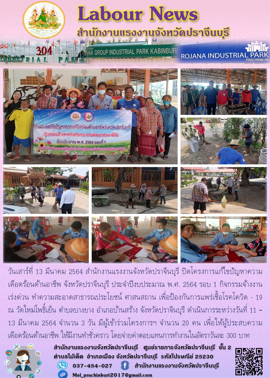 สำนักงานแรงงานจังหวัดปราจีนบุรี ปิดโครงการแก้ไขปัญหาความเดือดร้อนด้านอาชีพ จังหวัดปราจีนบุรี ประจำปีงบประมาณ พ.ศ. 2564 รอบ 1 กิจกรรมจ้างงานเร่งด่วน ทำความสะอาดสาธารณประโยชน์ ศาสนสถาน เพื่อป้องกันการแพร่เชื้อโรคโควิด – 19