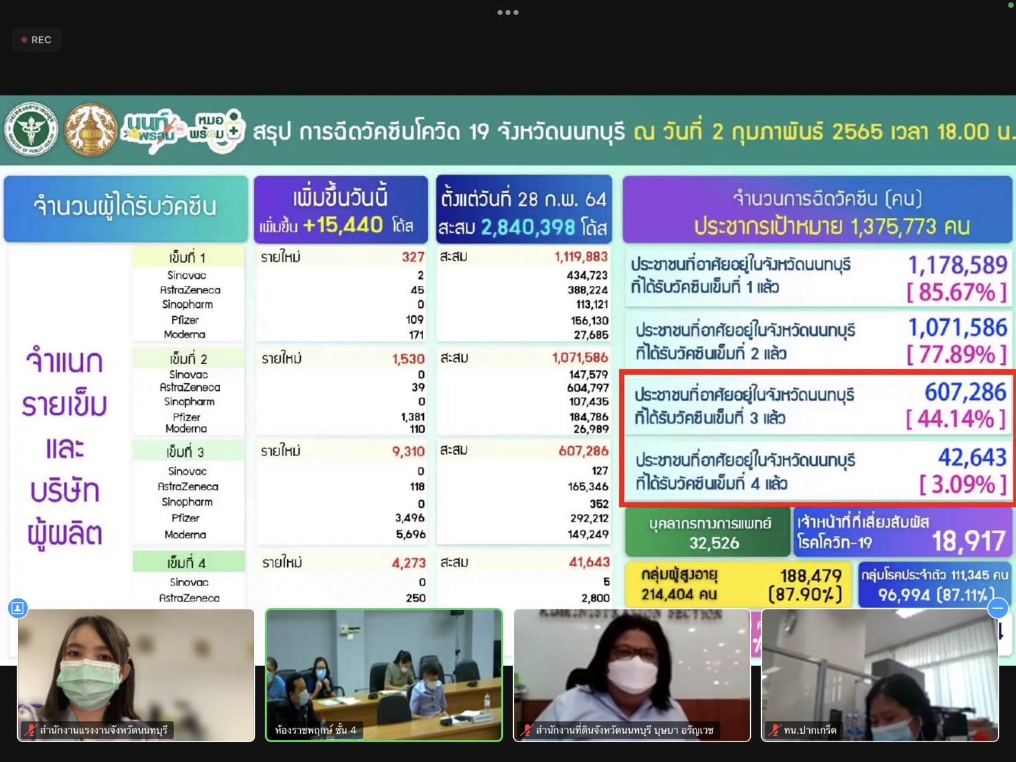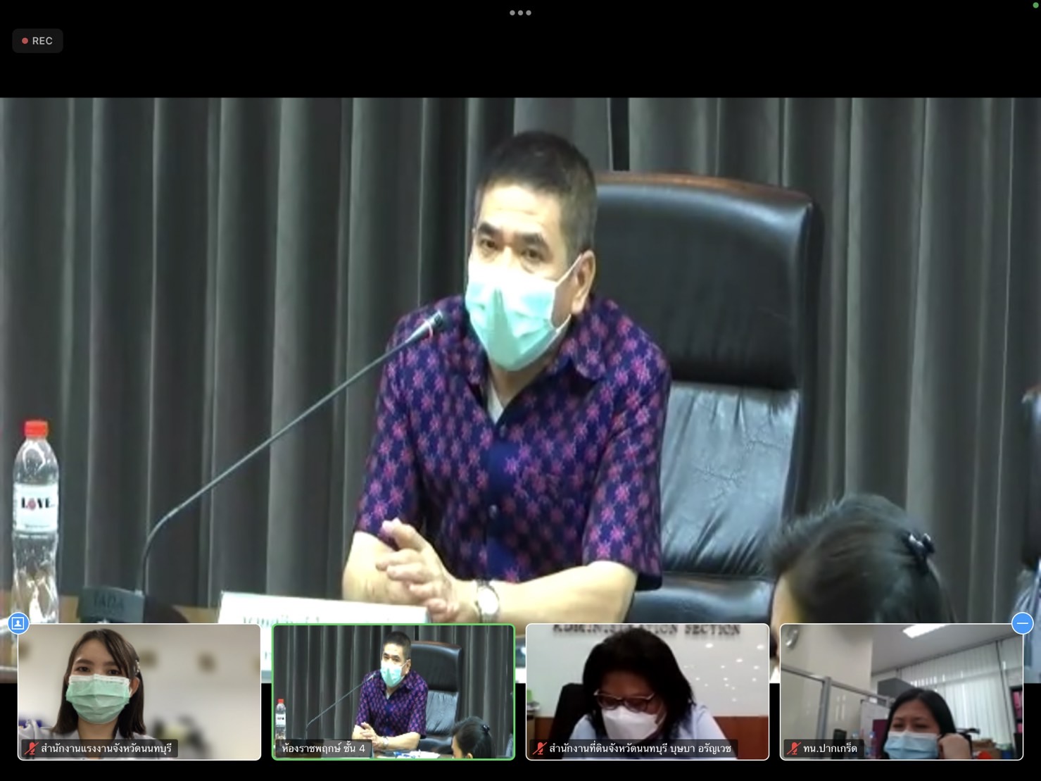 วันที่ 4 กุมภาพันธ์ 2565 นายวิชิตร สุวรรณมาก แรงงานจังหวัดนนทบุรี มอบหมายให้ นางสาวโสภิตา อินทรีย์วงศ์ นักวิชาการแรงงานชำนาญการ ร่วมประชุมคณะกรรมการโรคติดต่อจังหวัดนนทบุรี เพื่อหารือเกี่ยวกับสถานการณ์การแพร่ระบาดของโรคติดเชื้อไวรัสโคโรนา 2019 ในจังหวัดนนทบุรี ผ่านระบบวีดีทัศน์ทางไกล (VCUBE-ZOOM) โดยมี นายสุจินต์ ไชยชุมศักดิ์ ผู้ว่าราชการจังหวัดนนทบุรี เป็นประธานการประชุม