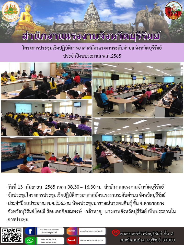 สำนักงานแรงงานจังหวัดบุรีรัมย์ จัดประชุมโครงการประชุมเชิงปฏิบัติการอาสาสมัครแรงงานระดับตำบล จังหวัดบุรีรัมย์ ประจำปีงบประมาณ พ.ศ.2565