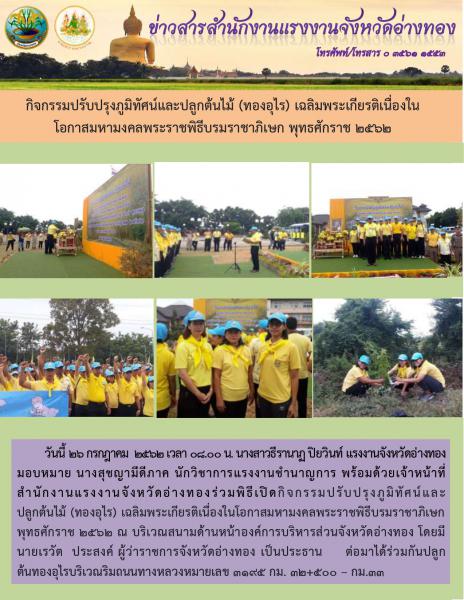สำนักงานแรงงานอ่างทอง ร่วมกิจกรรมปรับปรุงภูมิทัศน์และปลูกต้นไม้ (ทองอุไร) เฉลิมพระเกียรติเนื่องใน โอกาสมหามงคลพระราชพิธีบรมราชาภิเษก พุทธศักราช 2562