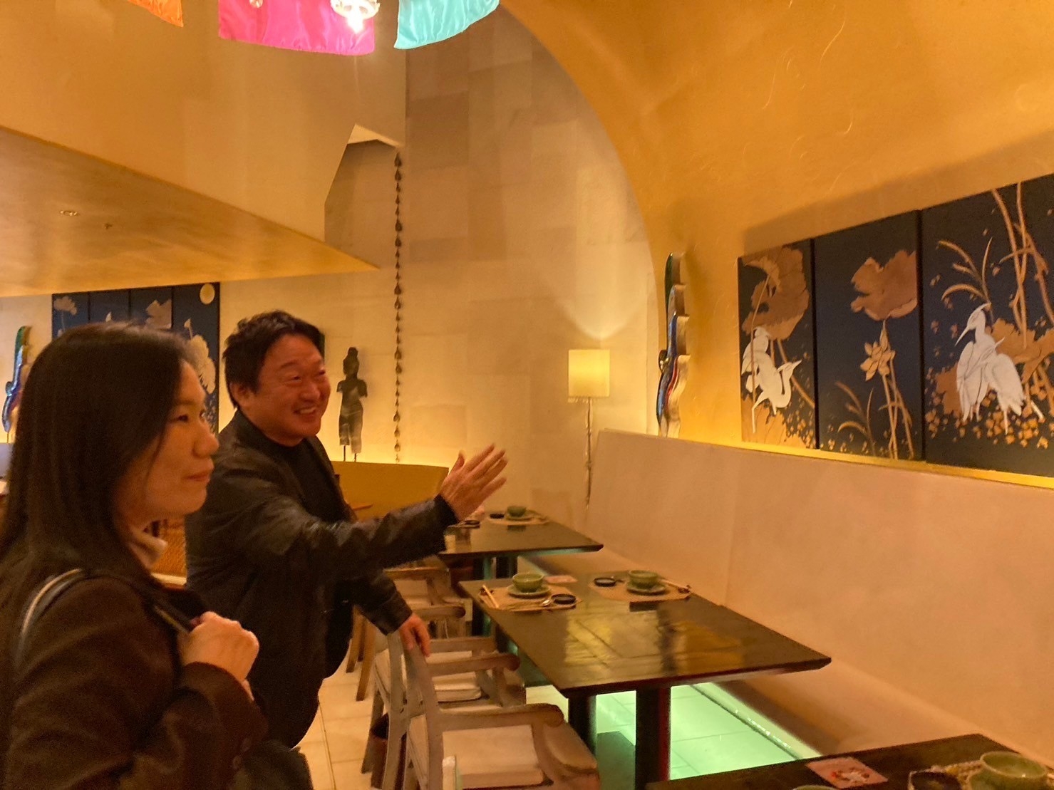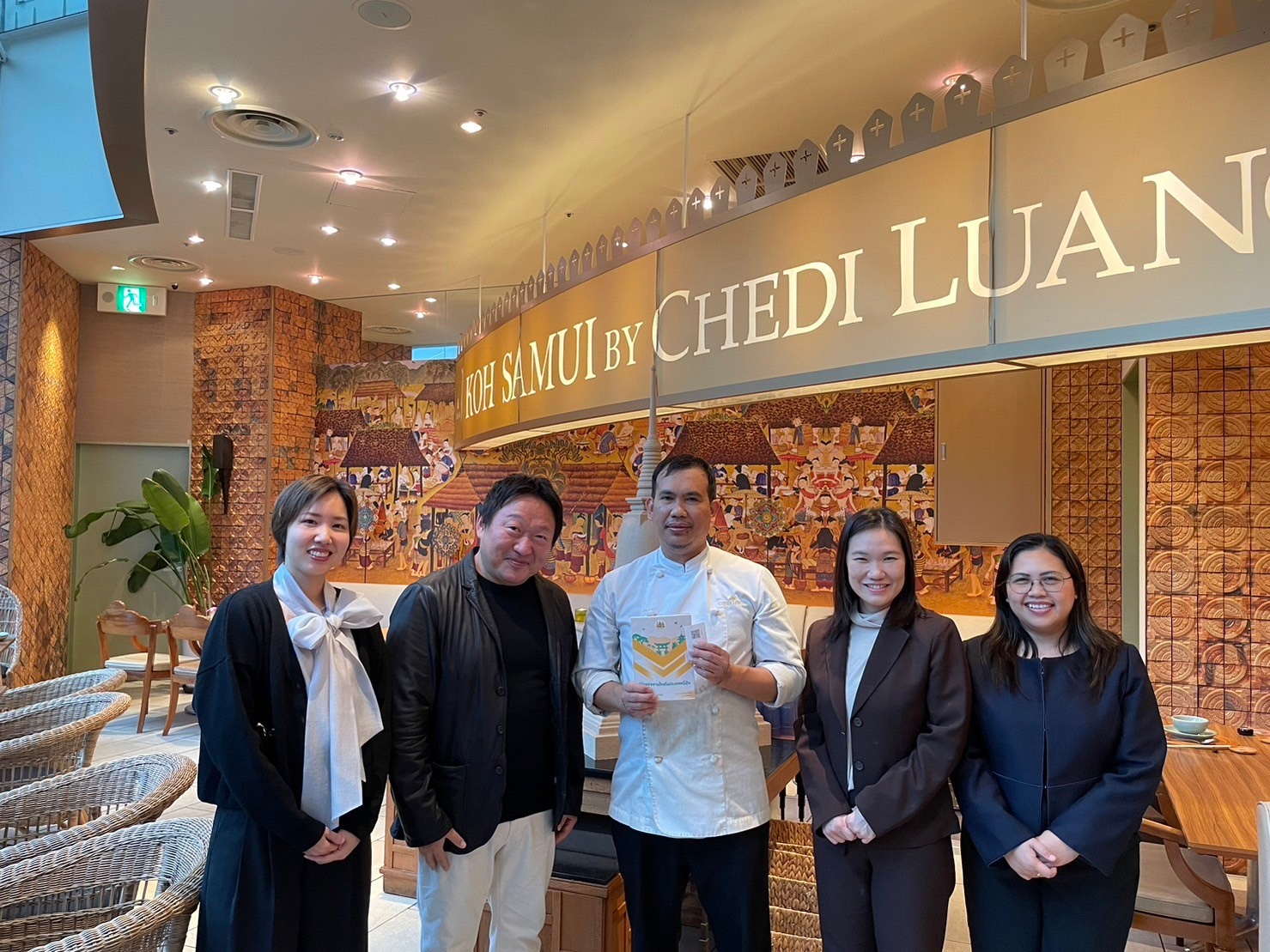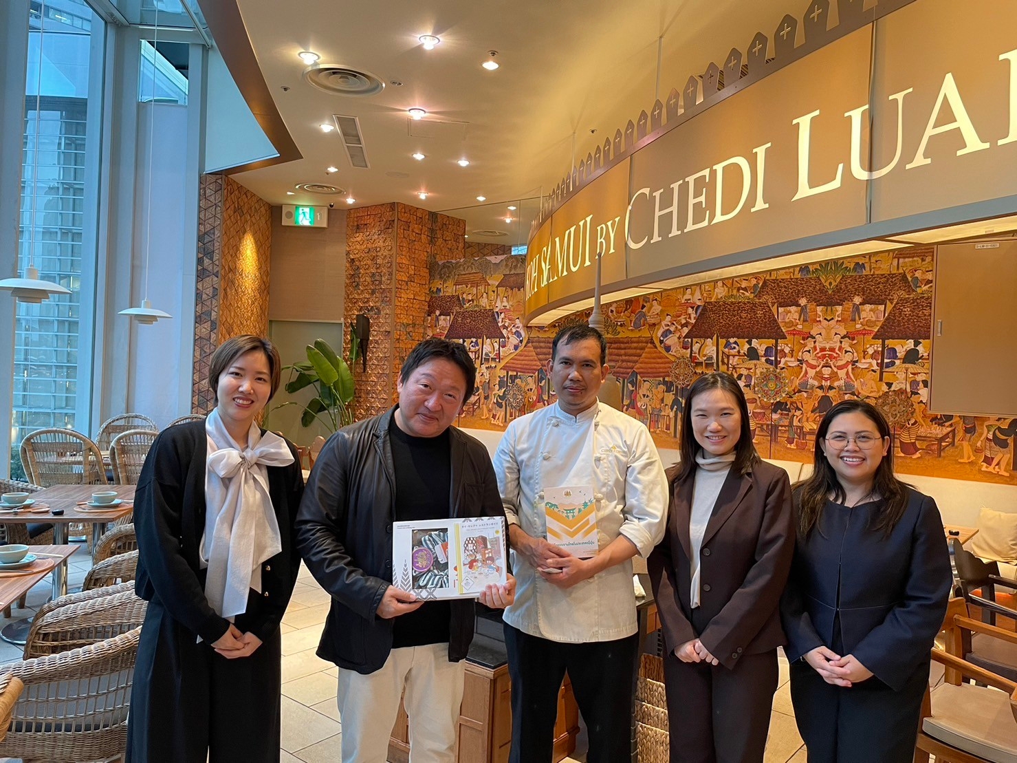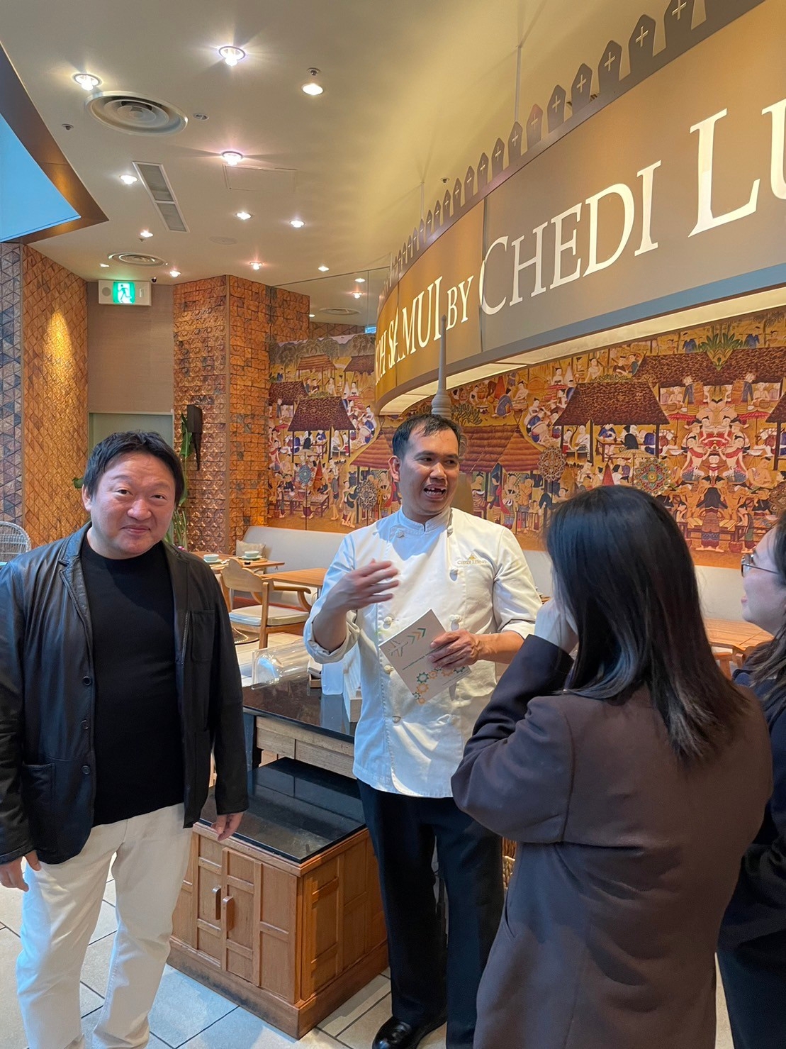 Mr. KAJIHARA Hiroshi กล่าวต้อนรับและพาเยี่ยมชมร้านทั้ง 2 แห่ง ซึ่งตกแต่งร้านและให้บริการอาหารแตกต่างกัน โดยร้าน KOH SAMUI BY CHEDI LUANG ตกแต่งร้านและให้บริการอาหารไทยภาคใต้ เช่น คั่วกลิ้ง แกงเหลือง เป็นต้น ส่วนร้าน CHEDI LUANG สาขา Herbis Plaza ENT ตกแต่งร้านและให้บริการอาหารไทยภาคเหนือ (สไตล์เชียงใหม่) มีแรงงานไทยทำงานตำแหน่งผู้ปรุงอาหารไทย (กุ๊ก) รวม 6 คน