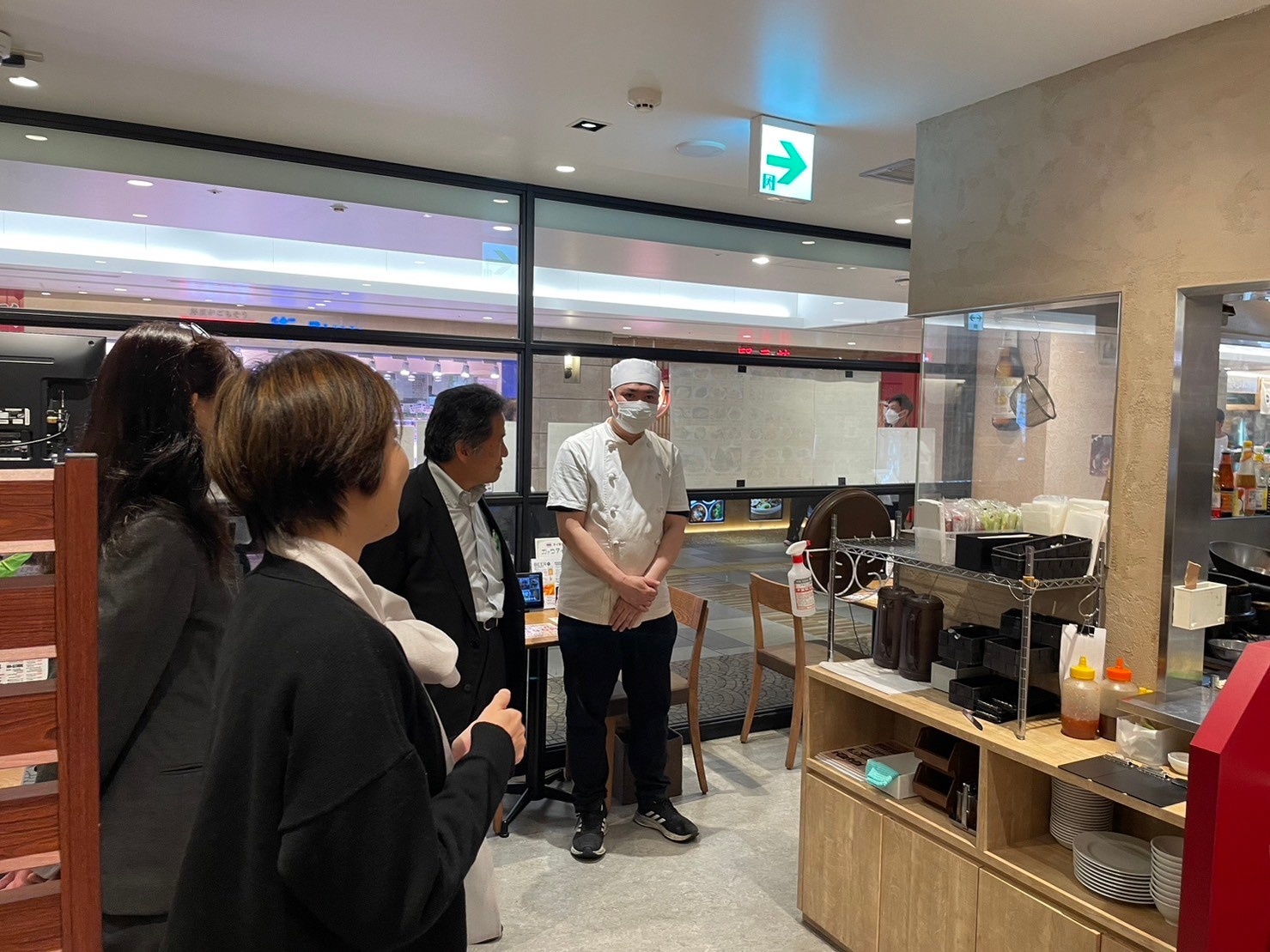 Mr. KAWAKITA Masaki กล่าวต้อนรับและให้ข้อมูลเกี่ยวกับร้านว่ามี 5 สาขา ในพื้นที่กรุงโตเกียว นครโอซากา และจังหวัดโกเบ มีแรงงานไทยทำงานตำแหน่งผู้ปรุงอาหารไทย (กุ๊ก) ร้านละ 3 คน โดยขณะนี้สาขาในโตเกียวมีปัญหาขาดแคลนกุ๊ก ซึ่งจะขอปรึกษาสำนักงานแรงงานในประเทศญี่ปุ่นต่อไป