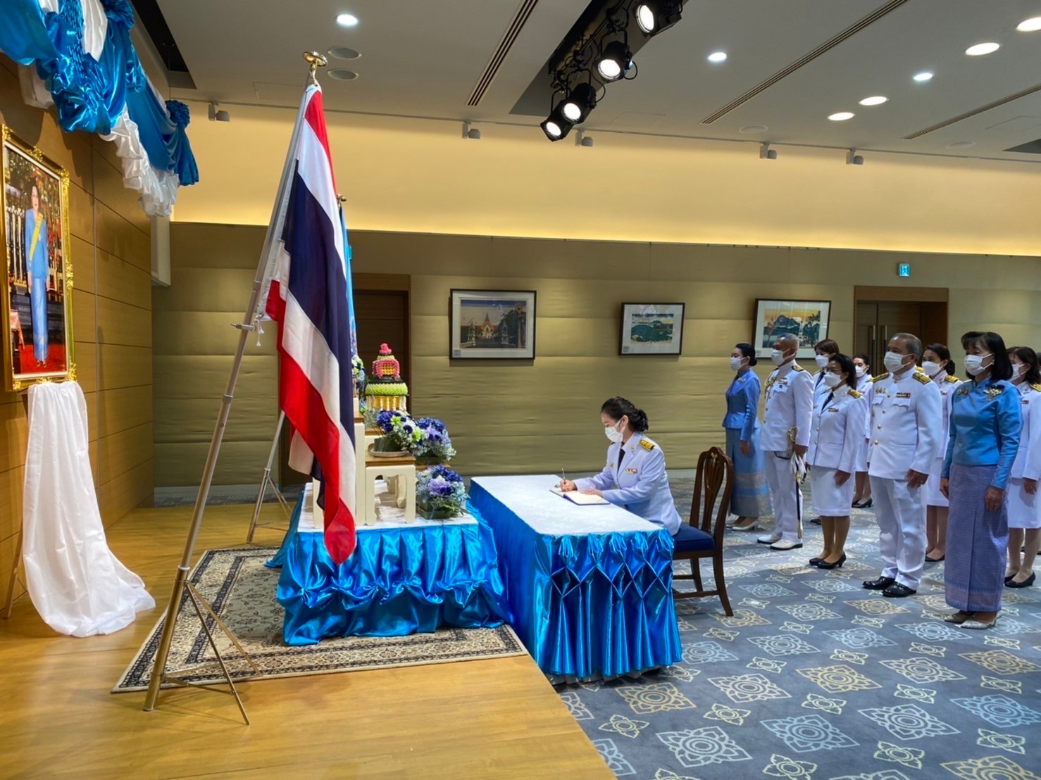 เมื่อวันที่ 11 สิงหาคม 2565 เวลา 10.30 – 11.30 น. (เวลาท้องถิ่นประเทศญี่ปุ่น ซึ่งเร็วกว่าประเทศไทย 2 ชั่วโมง) นางสาวสดุดี กิตติสุวรรณ อัครราชทูตที่ปรึกษา (ฝ่ายแรงงาน) สำนักงานแรงงานในประเทศญี่ปุ่น พร้อมด้วยนางสาวเกศสุดา มงคลชาติ ที่ปรึกษา (ฝ่ายแรงงาน) เข้าร่วมพิธีถวายพระพรชัยมงคลและลงนามถวายพระพรสมเด็จพระนางเจ้าสิริกิติ์ พระบรมราชินีนาถ พระบรมราชชนนีพันปีหลวง เนื่องในโอกาสมหามงคลเฉลิมพระชนมพรรษา 90 พรรษา 12 สิงหาคม 2565 โดยมีนายสิงห์ทอง ลาภพิเศษพันธุ์ เอกอัครราชทูต ณ กรุงโตเกียว เป็นประธาน และมีหัวหน้าและข้าราชการสำนักงานทีมประเทศไทยประจำกรุงโตเกียว พร้อมด้วยคู่สมรส เข้าร่วมในพิธีดังกล่าว ณ หอประชุมสถานเอกอัครราชทูต ณ กรุงโตเกียว