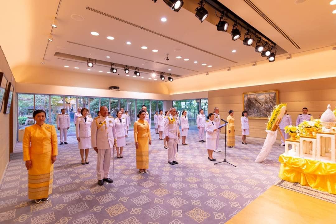 เมื่อวันที่ 12 ตุลาคม 2566 เวลา 15.00 – 16.00 น. (เวลาท้องถิ่นประเทศญี่ปุ่น ซึ่งเร็วกว่าประเทศไทย 2 ชั่วโมง) นางสาวสดุดี กิตติสุวรรณ อัครราชทูตที่ปรึกษา (ฝ่ายแรงงาน) สำนักงานแรงงานในประเทศญี่ปุ่น พร้อมด้วยนางสาวเกศสุดา มงคลชาติ ที่ปรึกษา (ฝ่ายแรงงาน) เข้าร่วมพิธีถวายพวงมาลาและถวายบังคมเพื่อน้อมรำลึกในพระมหากรุณาธิคุณ เนื่องในวันคล้ายวันสวรรคตพระบาทสมเด็จพระบรมชนกาธิเบศวร มหาภูมิพลอดุลยเดชมหาราช บรมนาถบพิตร วันที่ 13 ตุลาคม 2566 ณ หอประชุม สถานเอกอัครราชทูต ณ กรุงโตเกียว โดยมีนางปรางทิพย์ กาญจนหัตถกิจ อุปทูต รักษาราชการแทนเอกอัครราชทูต ณ กรุงโตเกียว เป็นประธาน และมีหัวหน้าสำนักงาน ข้าราชการ ทีมประเทศไทยประจำกรุงโตเกียว และคู่สมรส เข้าร่วมพิธีดังกล่าว