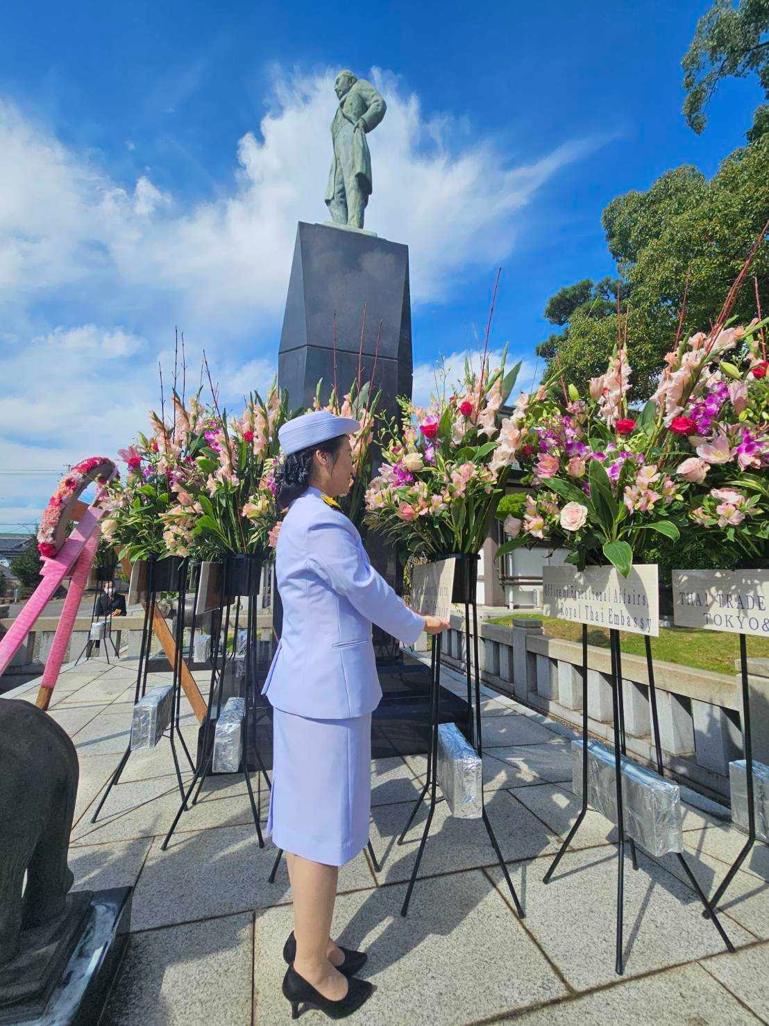 เมื่อวันที่ 23 ตุลาคม 2566 นางสาวสดุดี กิตติสุวรรณ อัครราชทูตที่ปรึกษา (ฝ่ายแรงงาน) สำนักงานแรงงานในประเทศญี่ปุ่นเข้าร่วมพิธีถวายพวงมาลาและสักการะพระบรมรูปพระบาทสมเด็จพระจุลจอมเกล้าเจ้าอยู่หัว เนื่องในโอกาสวันปิยมหาราช 23 ตุลาคม 2566 ณ วัดนิตไตจิ เมืองนาโกยา จังหวัดไอจิ โดยมีนางปรางทิพย์ กาญจนหัตถกิจ อุปทูต รักษาราชการแทนเอกอัครราชทูต ณ กรุงโตเกียว เป็นประธานในพิธีฯ มีนายโสรัจ สุขถาวร กงสุลใหญ่ ณ เมืองฟูกูโอกะ นายอัครพงศ์ เฉลิมนนท์ กงสุลใหญ่ ณ นครโอซากา นาย MIWA Yoshihiro กงสุลใหญ่กิตติมศักดิ์ ณ เมืองนาโกยา หัวหน้าสำนักงานทีมประเทศไทยเข้าร่วมพิธีฯ พร้อมด้วยคู่สมรส ผู้แทนนักเรียนไทย และคนไทยในประเทศญี่ปุ่นเข้าร่วมพิธีฯ ดังกล่าว