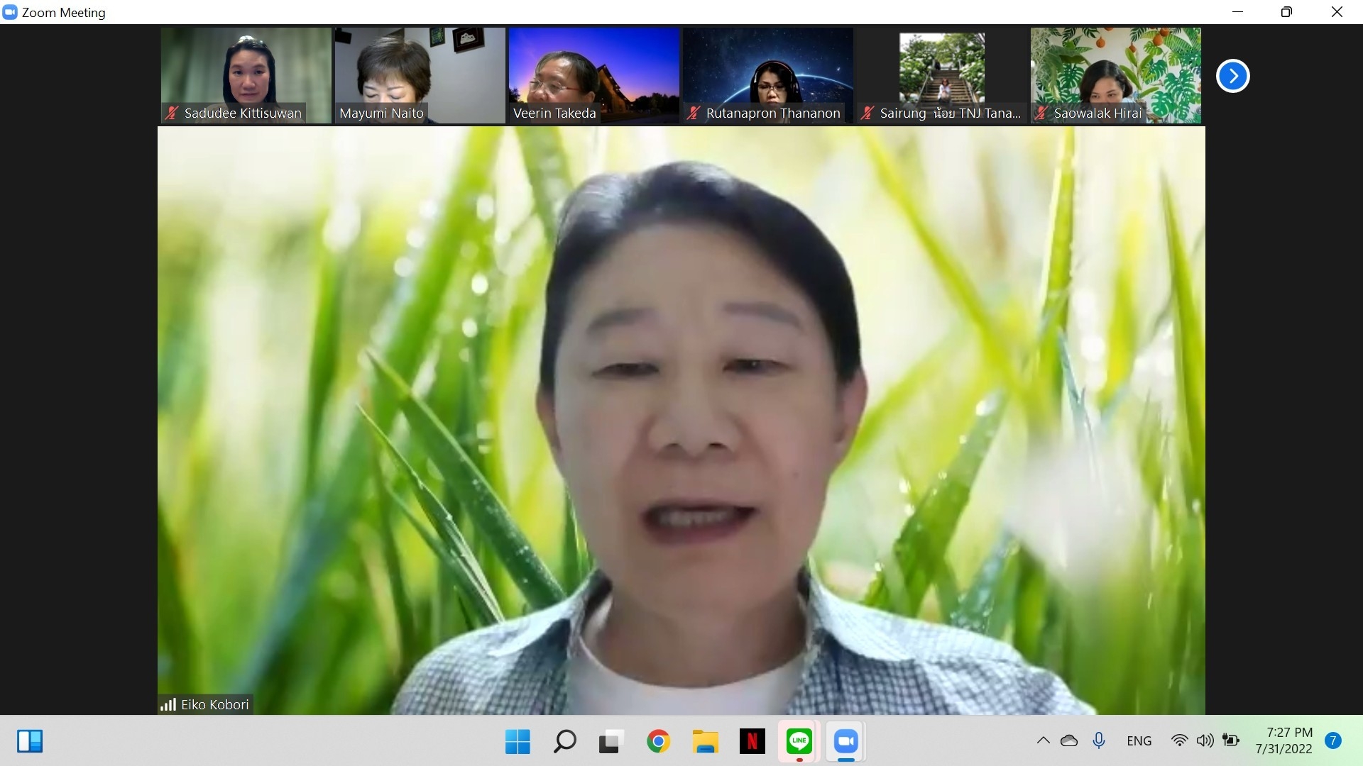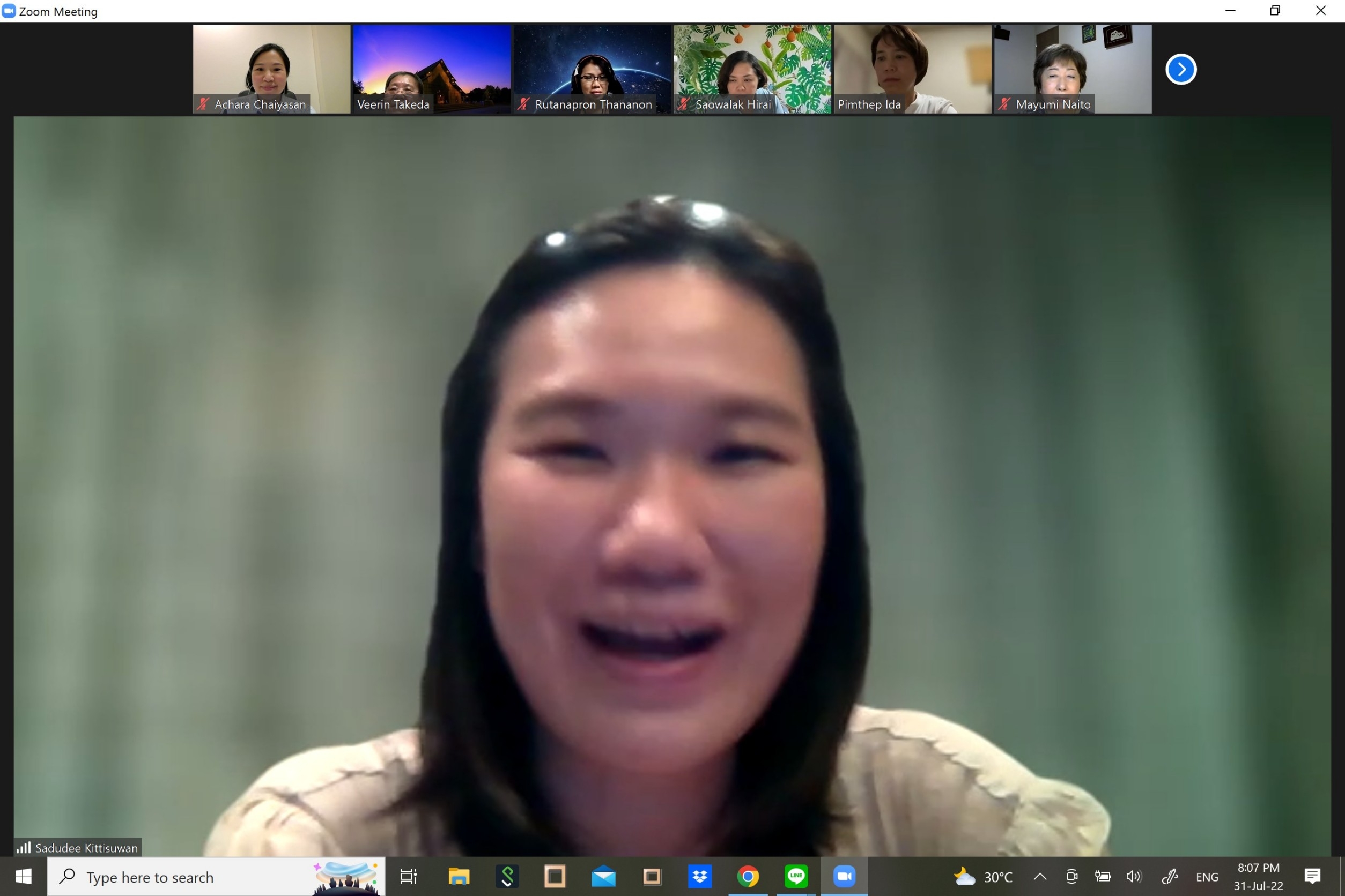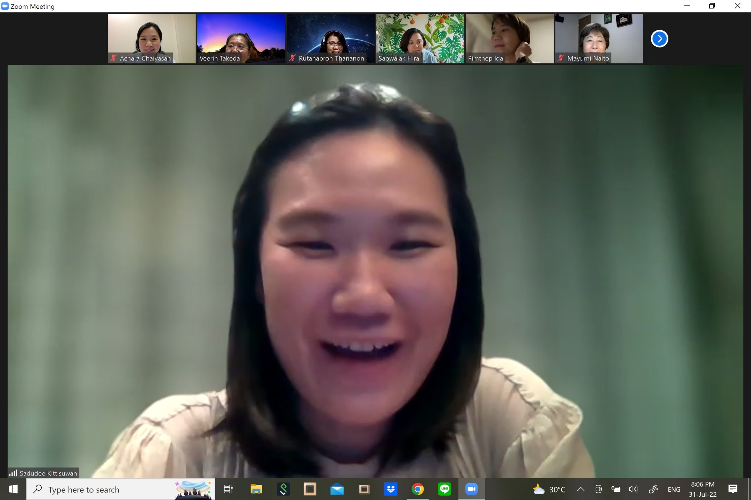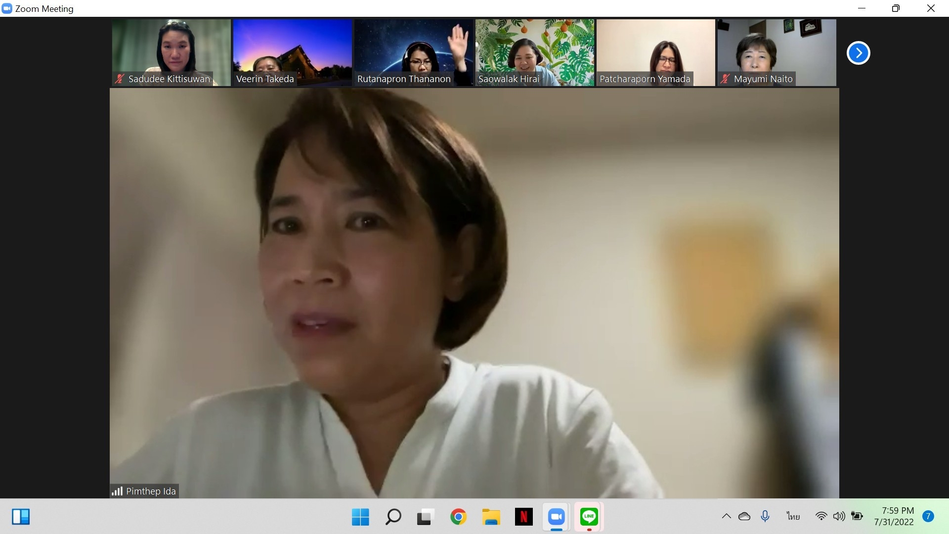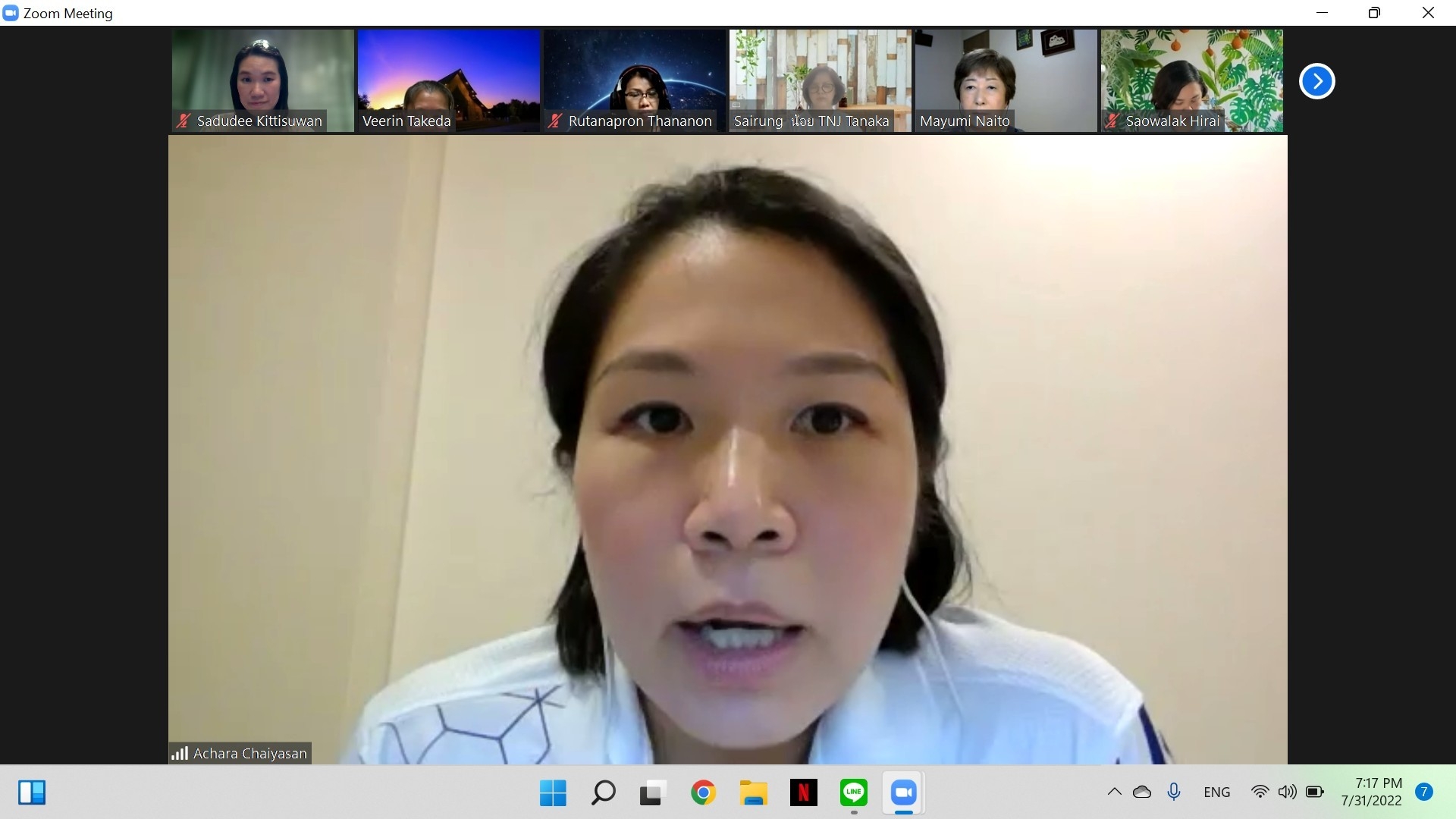 เมื่อวันที่ 31 กรกฎาคม 2565 เวลา 19.00 – 20.30 น. (เวลาท้องถิ่นประเทศญี่ปุ่น ซึ่งเร็วกว่าประเทศไทย 2 ชั่วโมง) นางสาวสดุดี กิตติสุวรรณ อัครราชทูตที่ปรึกษา (ฝ่ายแรงงาน) สำนักงานแรงงานในประเทศญี่ปุ่น เข้าร่วมการประชุมทางไกลผ่านจอภาพกับเครือข่ายคนไทยในญี่ปุ่น (Thai Network in Japan: TNJ) โดยมีผู้เข้าร่วมประชุมทั้งหมด 14 คน ประกอบด้วย สมาชิก TNJ เขตจังหวัดอิบารากิ จังหวัดโทจิกิ จังหวัดคานากาวา จังหวัดนากาโนะ และกรุงโตเกียว ข้าราชการ/เจ้าหน้าที่ฝ่ายกงสุลสถานเอกอัครราชทูต ณ กรุงโตเกียว สำนักงานแรงงานในประเทศญี่ปุ่น และมีผู้สังเกตการณ์จากกระทรวงการพัฒนาสังคมและความมั่นคงของมนุษย์ด้วย 1 คน