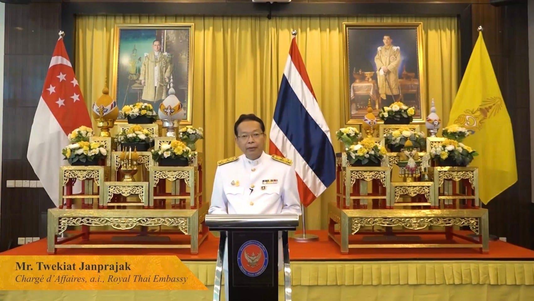 นอกจากนี้ สถานเอกอัครราชทูตฯ ยังได้จัดกิจกรรมในรูปแบบเสมือนจริงผ่านเฟสบุ๊คเพจของสถานเอกอัครราชทูตฯ โดยมีนาย Lawrence Wong รัฐมนตรีว่าการกระทรวงการคลังสิงคโปร์เป็นผู้แทนรัฐบาลสิงคโปร์เข้าร่วมในกิจกรรมดังกล่าว รวมทั้งมีเอกอัครราชทูตบรูไนประจำสิงคโปร์ในฐานะประฐานอาเซียน วาระปี 2564และเอกอัครราชทูตกัมพูชาประจำสิงคโปร์ ในฐานะประธานอาเซียน วาระปี 2565 ร่วมกล่าวแสดงความยินดีในโอกาสวันชาติไทย