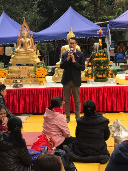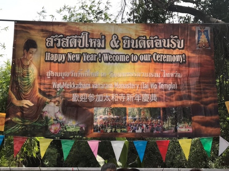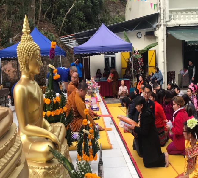 วันอังคารที่ 1 มกราคม 2562 เวลา 11.00-16.00 น. นางรัชนีกร ปิ่นแก้ว กงสุล(ฝ่ายแรงงาน)และเจ้าหน้าที่ ร่วมงานทำบุญชึ้นปีใหม่ ประจำปี 2562 ณ วัดเมฆธรรมวนาราม เขต ต่ายโปว ฮ่องกง โดยมีนายอสิ ม้ามณี เป็นประธานในพิธี โอกาสนี้ กงสุลใหญ่ได้กล่าวอวยพรปีใหม่ แจ้งประชาสัมพันธ์ข่าวสารชาวไทยในฮ่องกง ภายในงานมีกิจกรรมการทำบุญตักบาตร ทอดผ้าป่า ถวายสังฆทาน การแสดงจากสมาคมรวมไทยในฮ่องกง สหภาพแรงงานไทยในฮ่องกง กลุ่มหมูบิน โรงทานเครื่องดื่ม ชมรมนักศึกษา กศน. ฮ่องกง มีผู้ร่วมงานประมาณ 400 คน