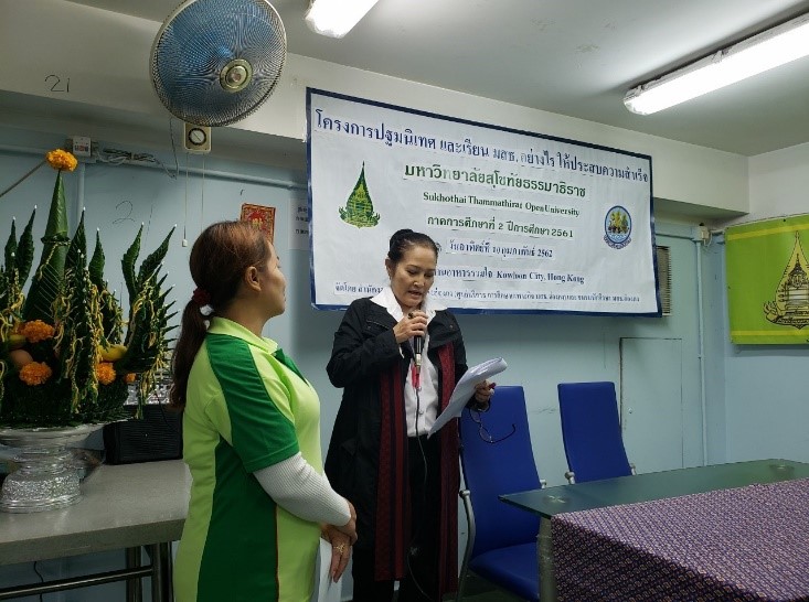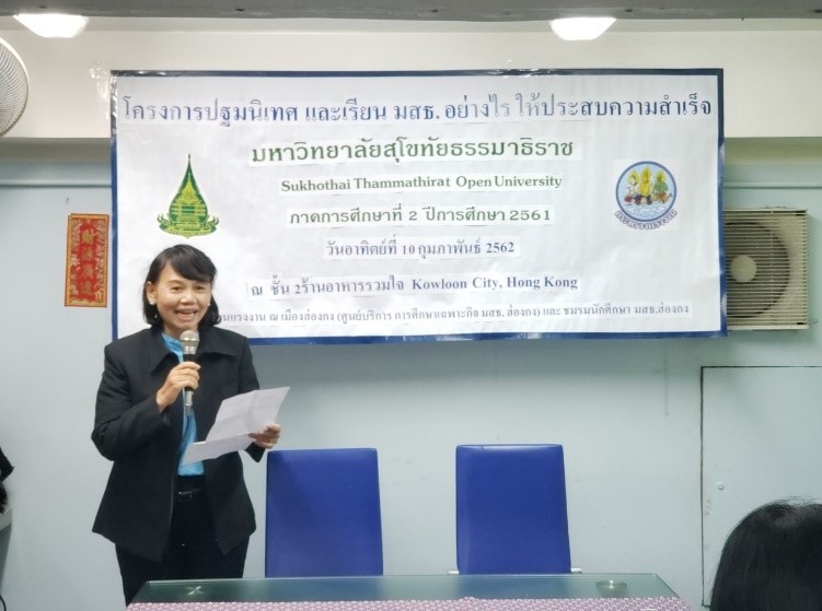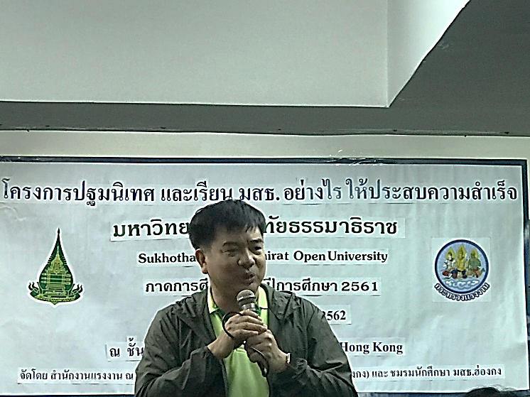วันอาทิตย์ที่ 10 กุมภาพันธ์ 2562 สำนักงานแรงงาน ณ เมืองฮ่องกง ร่วมโครงการปฐมนิเทศ และเรียน มสธ. อย่างไร ให้ประสบความสำเร็จ ของชมรมนักศึกษามหาวิทยาลัยสุโขทัยธรรมาธิราช โดยนางรัชนีกร ปิ่นแก้ว กงสุล (ฝ่ายแรงงาน) เป็นประธานพิธี ภายในงานมีกิจกรรมการปฐมนิเทศ และเรียนและเรียน มสธ. อย่างไร ให้ประสพความสำเร็จ โดย ผศ ดร. อาจารย์เฉลิมศักดิ์ ตุ้มหิรัญ ผู้อำนวยการสำนักบริการการศึกษามหาวิทยาลัยสุโขทัยธรรมธิราช การเลือกประธานชมรมนักศึกษาคนใหม่ และกิจกรรมนันทนาการ มีนักศึกษาเข้าร่วมจำนวน 40 คน