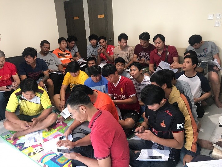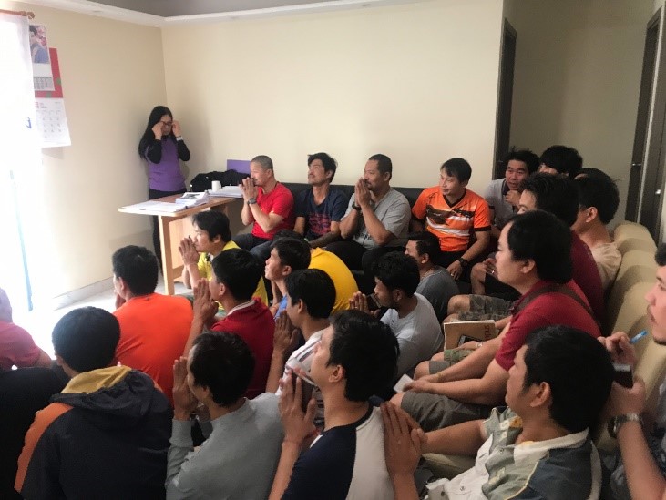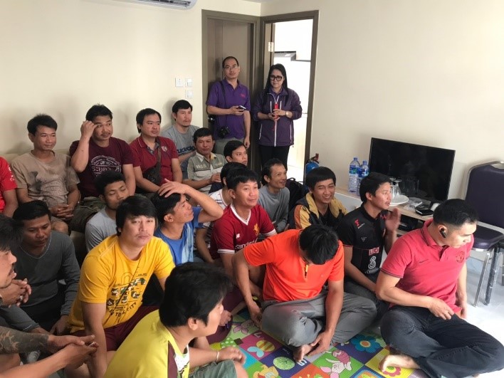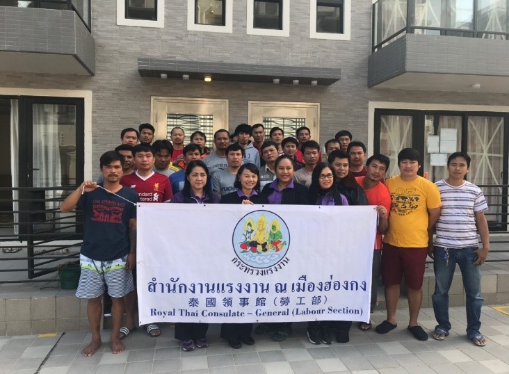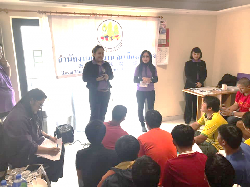 วันอาทิตย์ที่ 20 มกราคม 2562 เวลา 10.00-12.00 น. นางรัชนีกร ปิ่นแก้ว กงสุล (ฝ่ายแรงงาน) และนางสาวอรอนงค์ ศรีสุวิทธานนท์ รองกงสุล (ฝ่ายแรงงาน) พร้อมด้วยเจ้าหน้าที่ ให้บริการรับรายงานตัวนอกสถานที่แก่แรงงานช่างเชื่อมแก๊ส ซึ่งนำเข้าแรงงานโดยบริษัท Kum Shing E&M Limited ซึ่งสำนักงานแรงงาน ณ เมืองฮ่องกง ได้แนะนำเจ้าหน้าที่ ให้ความรู้ทั่วไปเกี่ยวกับวัฒนธรรมชาวฮ่องกง ความรู้เกี่ยวกับการทำงาน กฎหมายแรงงานฮ่องกง ประกันสังคม ม. 40 การรับรายตัว แจ้งข่าวสารแรงงาน การศึกษา และชุมชนไทยในฮ่องกง มีจำนวนแรงงานเข้าร่วมจำนวน 27 คน