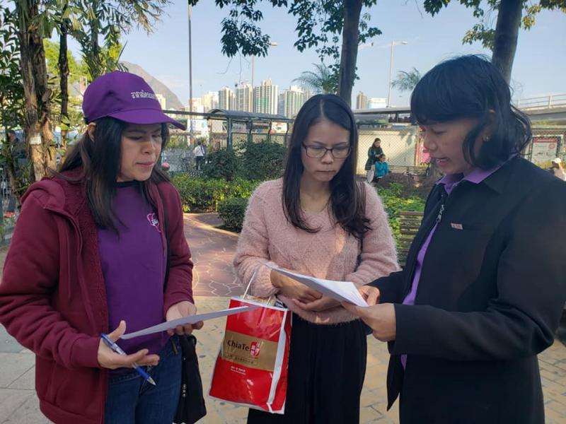 ช่วงบ่าย เวลา 14.00-16.00 น. ให้บริการจุดนัดพบอาสาสมัครแรงงาน ที่ Tak Ku Ling Road Rest Garden เกาหล่งเส่ง เขตเกาลูนซิตี้ โดยสำนักงานแรงงานฯ รับรายงานตัวสำหรับแรงงานตำแหน่งผู้ช่วยแม่บ้านที่เดินทางมาทำงานครั้งแรกในฮ่องกง รับปรึกษาแนะนำปัญหาในการทำงานเบื้องต้น แจ้งข่าวสารแรงงาน การศึกษา แจกคู่มือการทำงานในฮ่องกง และคูปองตรวจสุขภาพ มีผู้มารับบริการจำนวน 30 คน