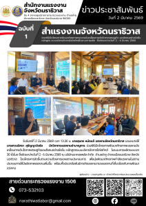 วันจันทร์ที่ 2 มีนาคม 2569 เวลา 13.30 น. นายสุนทร หมัดแล้ แรงงานจังหวัดนราธิวาส มอบหมายให้ นางสาวนริศรา สุธัญญาวัชชัย นักวิชาการแรงงานชำนาญการ ร่วมพิธีเปิดโครงการพัฒนาศักยภาพแรงงานขับเคลื่อนการเติบโตภาคเศรษฐกิจและสังคมอย่างยังยืน หลักสูตรระบบบริหารจัดการโลจิสติกส์ ในระบบการผลิตระยะเวลา 30 ชั่วโมง ซึ่งจัดระหว่างวันที่ 2 – 6 มีนาคม 2569 ณ บริษัทนราทองพลัส จำกัด ตำบลลำภู อำเภอเมืองนราธิวาส จังหวัดนราธิวาส โดยโครงการจัดขึ้นตามความต้องการของสถานประกอบการ เพื่อมุ่งพัฒนาศักยภาพกำลังแรงงานในสถานประกอบการให้มีผลิตภาพแรงงานเพิ่มขึ้น พร้อมทั้งประชาสัมพันธ์ภารกิจของกระทรวงแรงงานที่เกี่ยวข้องกับการพัฒนาแรงงาน