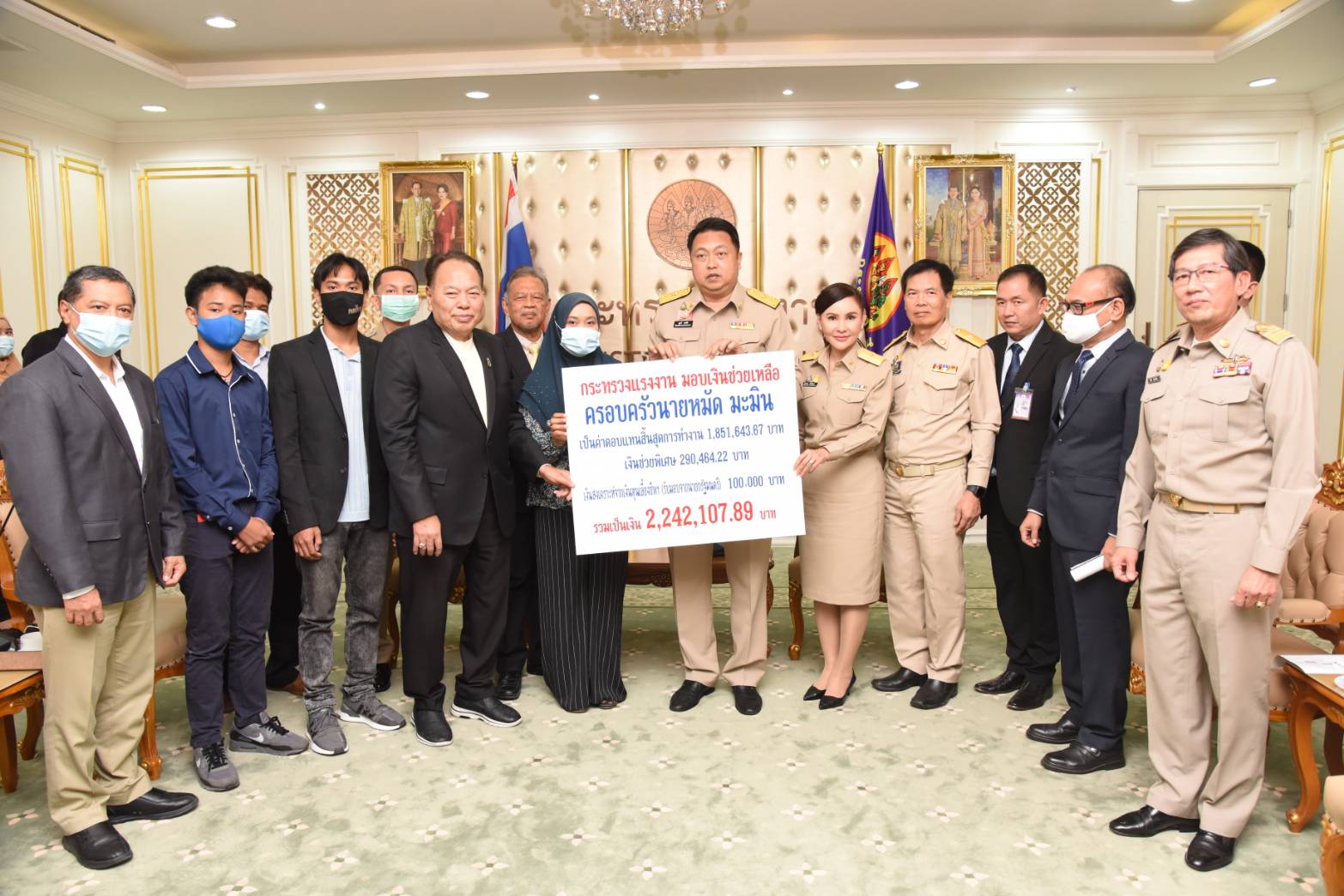 เมื่อวันที่ 14 ธันวาคม 2563 นายสุชาติ ชมกลิ่น รัฐมนตรีว่าการกระทรวงแรงงาน มอบเงินช่วยเหลือแก่ครอบครัวนางอนุรักษ์ มะมิน ภรรยาของนายหมัด มะมิน ล่ามประจำสำนักงานแรงงานในประเทศซาอุดีอาระเบีย (กรุงริยาด) และครอบครัว เป็นค่าตอบแทนสิ้นสุดการทำงาน จำนวน 1,851,643.67 บาท เงินช่วยพิเศษ 290,464.22 บาท และเงินทุนเลี้ยงชีพสำหรับครอบครัวนายหมัด มะมิน ล่ามประจำสำนักงานแรงงานในประเทศซาอุดีอาระเบีย (กรุงริยาด) ที่เสียชีวิตจากการปฏิบัติหน้าที่ให้ความช่วยเหลือแรงงานไทยในประเทศซาอุดีอาระเบียในช่วงสถานการณ์การแพร่ระบาดของโรค COVID – 19 จำนวน 100,000 บาท จากพลเอกประยุทธ์ จันทร์โอชา นายกรัฐมนตรี ในพิธีมอบเงินช่วยเหลือแก่เจ้าหน้าที่ที่ได้รับผลกระทบจากการปฏิบัติหน้าที่ด้านการป้องกันและแก้ไขปัญหาการแพร่ระบาดของโรคติดเชื้อไวรัสโควิด -19 ซึ่งนายสุทธิ สุโกศล ปลัดกระทรวงแรงงาน เป็นผู้รับมอบเมื่อวันที่ 4 ธันวาคมที่ผ่านมา รวมเป็นเงินทั้งสิ้น 2,242,107.89 บาท เพื่อช่วยเหลือและให้กำลังใจแก่ครอบครัว ณ ห้องจัตุมงคล ชั้น 6 อาคารกระทรวงแรงงาน โดยมี นางธิวัลรัตน์ อังกินันทน์ ที่ปรึกษารัฐมนตรีว่าการกระทรวงแรงงาน นายสุเทพ ชิตยวงษ์ เลขานุการรัฐมนตรีว่าการกระทรวงแรงงาน พร้อมด้วย ผู้บริหารระดับสูงกระทรวงแรงงาน นายปรีดา เชื้อผู้ดี ที่ปรึกษาจุฬาราชมนตรีและนายกองค์การบริหารสวนตำบลท่าอิฐ นายประสิทธิ์ มะหะหมัด สมาชิกสภาผู้แทนราษฎรจังหวัดกรุงเทพมหานคร เขต 19 พรรคพลังประชารัฐ นายแพทย์กษิดิษ ศรีสง่า โรงพยาบาลกรุงเทพ นางอนุรักษ์ มะมิน ภรรยาของนายหมัด มะมิน และบุตรชายอีก 2 คน เข้าร่วมในครั้งนี้ด้วย ซึ่งนายหมัด มะมิน ล่ามประจำสำนักงานแรงงานในประเทศซาอุดีอาระเบีย (กรุงริยาด) ได้เสียชีวิตเนื่องจากปอดติดเชื้อและพระบาทสมเด็จพระเจ้าอยู่หัวทรงพระราชทานดินไปในการฝังศพเป็นกรณีพิเศษเมื่อวันที่ 19 กันยายนที่ผ่านมา ณ มัสยิดบุสตานุ้ลอารีฟีน ในอำเภอบางน้ำเปรี้ยว จังหวัดฉะเชิงเทรา โดย รมว.แรงงาน กล่าวว่า ท่านนายกรัฐมนตรี พล.อ.ประยุทธ์ จันทร์โอชา ได้มีความห่วงใยต่อครอบครัวของนายหมัด มะมิน ล่ามประจำสำนักงานแรงงานในประเทศซาอุดิอาระเบีย (กรุงริยาด) ที่ได้สูญเสียเสาหลักของครอบครัว จึงมอบหมายให้กระทรวงแรงงานเข้าไปดูแลช่วยเหลือครอบครัว ซึ่งในวันนี้จึงได้มอบเงินเป็นค่าตอบแทนสิ้นสุดการทำงาน เงินช่วยพิเศษ และเงินสงเคราะห์จากเงินทุนเลี้ยงชีพซึ่งรับมอบจากนายกรัฐมนตรี รวมเป็นเงินทั้งสิ้นกว่า 2 ล้าน 2 แสนบาท เพื่อเป็นการช่วยเหลือให้กำลังใจแก่ครอบครัวของนายหมัดฯ