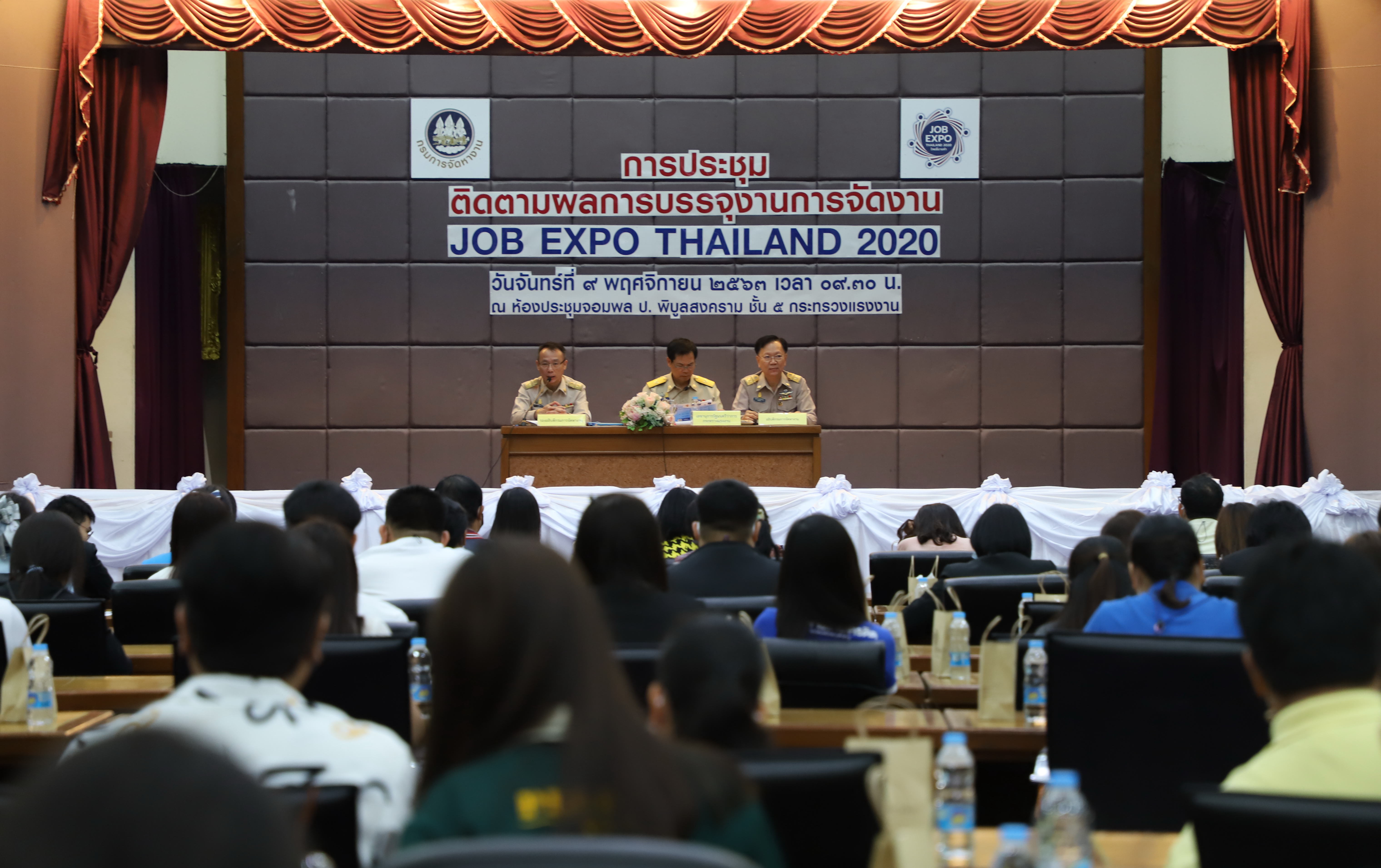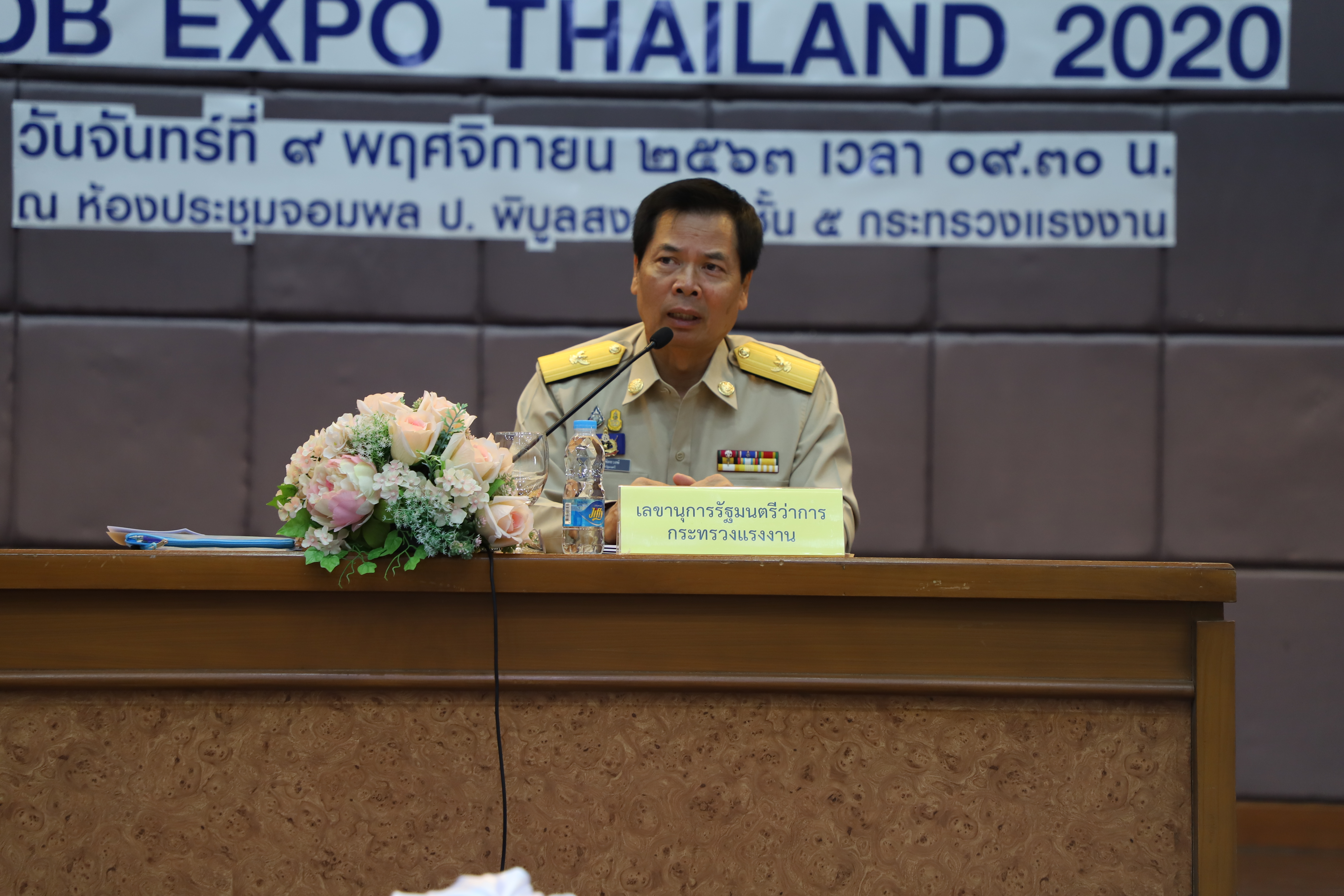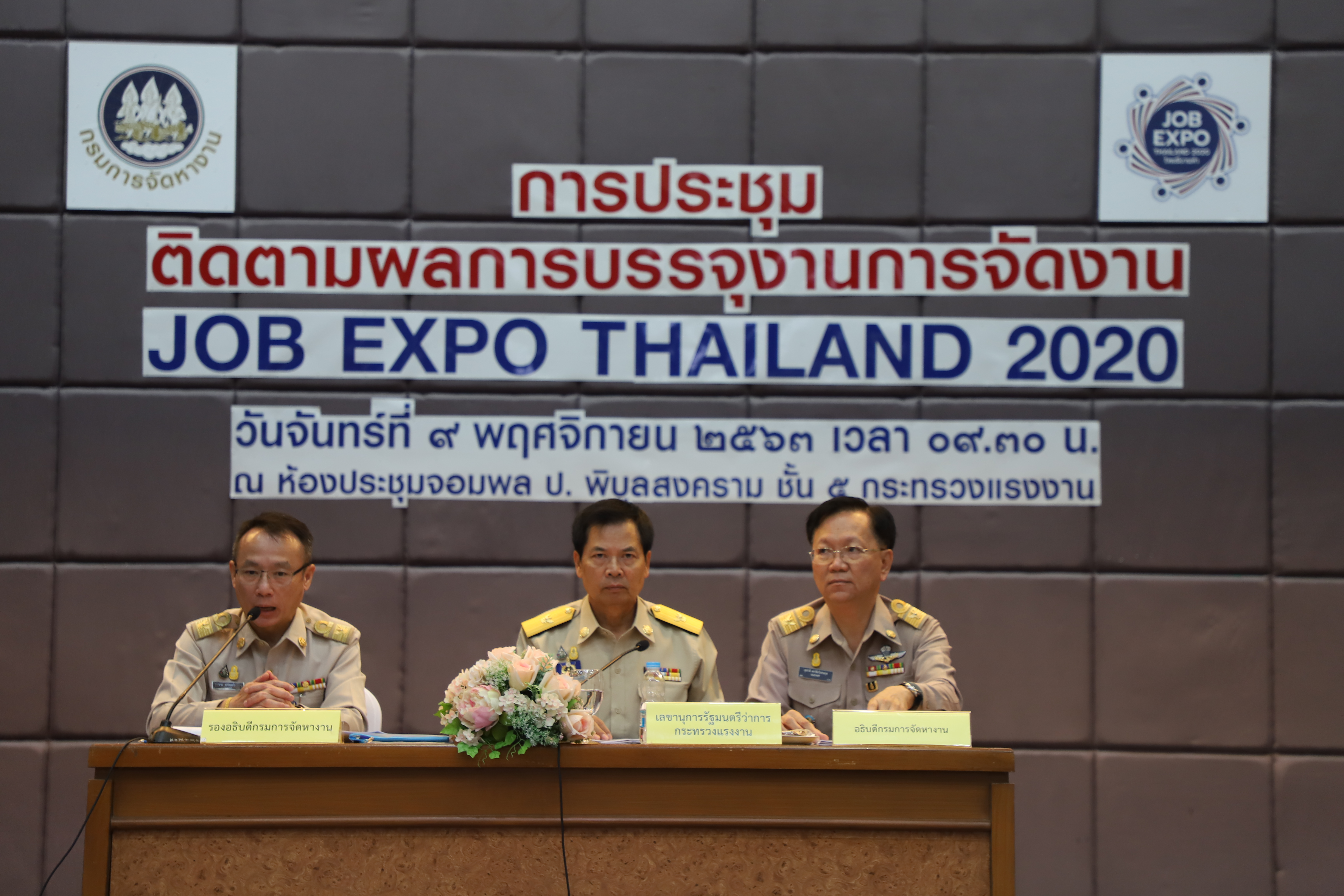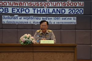 เมื่อวันที่ 9 พฤศจิกายน 2563 นายสุชาติ ชมกลิ่น รัฐมนตรีว่าการกระทรวงแรงงาน มอบหมายให้ นายสุเทพ ชิตยวงษ์ เลขานุการรัฐมนตรีว่าการกระทรวงแรงงาน เป็นประธานการประชุมติดตามผลการบรรจุงานตามโครงการ JOB EXPO THAILAND 2020 ณ ห้องประชุมจอมพล ป.พิบูลสงคราม ชั้น 5 อาคารกระทรวงแรงงาน โดยมี ผู้บริหารระดับสูงกระทรวงแรงงาน เข้าร่วมในครั้งนี้ด้วย โดยเลขานุการรัฐมนตรีว่าการกระทรวงแรงงาน กล่าวว่า ท่านสุชาติ ชมกลิ่น รมว.แรงงาน ได้ฝากขอบคุณมายังนายจ้างสถานประกอบการทุกแห่งที่ได้มาร่วมออกบูธรับสมัครงานในงาน Job Expo THAILAND 2020 ที่ผ่านมา ในวันนี้ผมจึงได้รับมอบหมายจากท่านรัฐมนตรีให้มาประชุมหารือเพื่อติดตามความคืบหน้าผลการบรรจุงานตามโครงการดังกล่าว