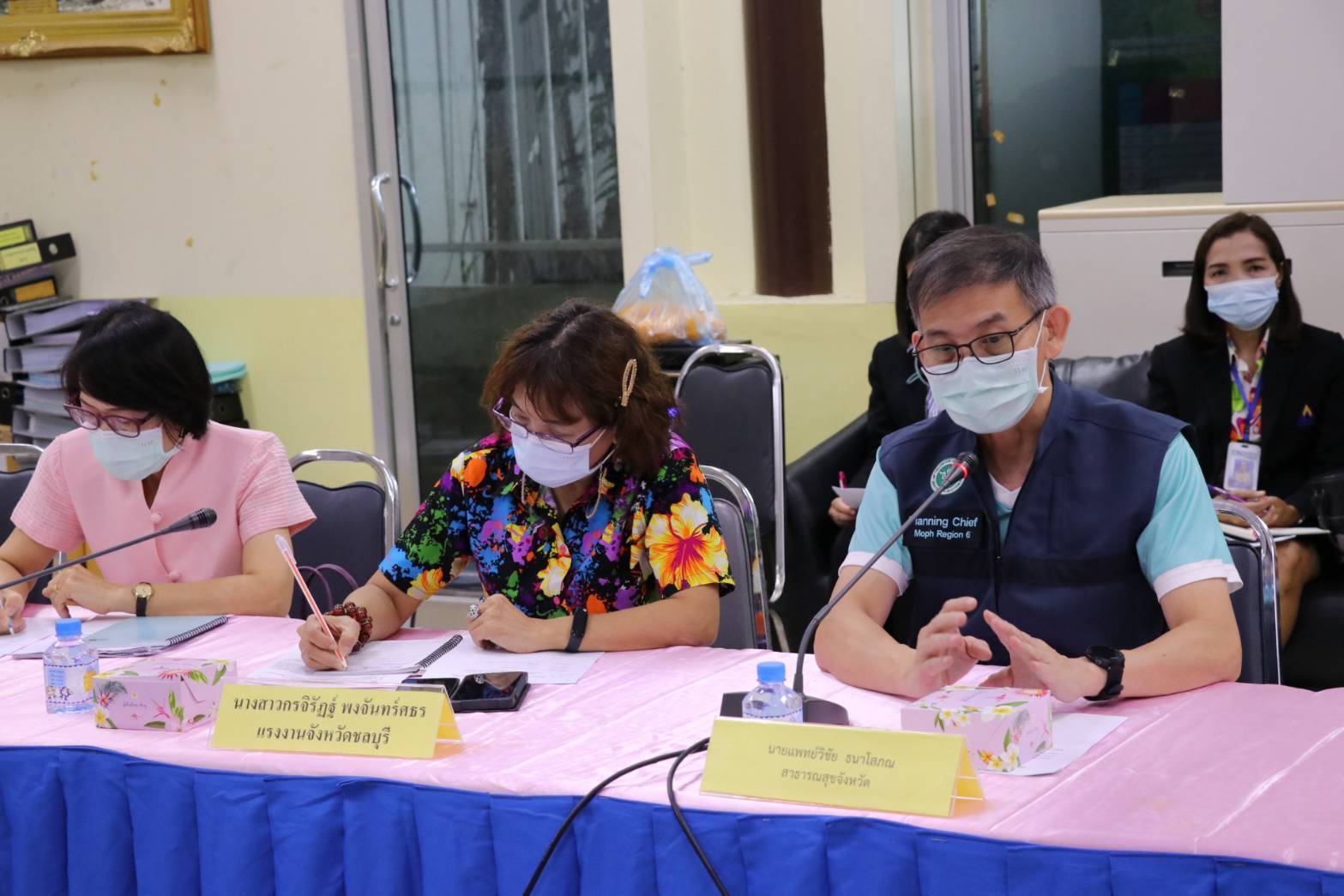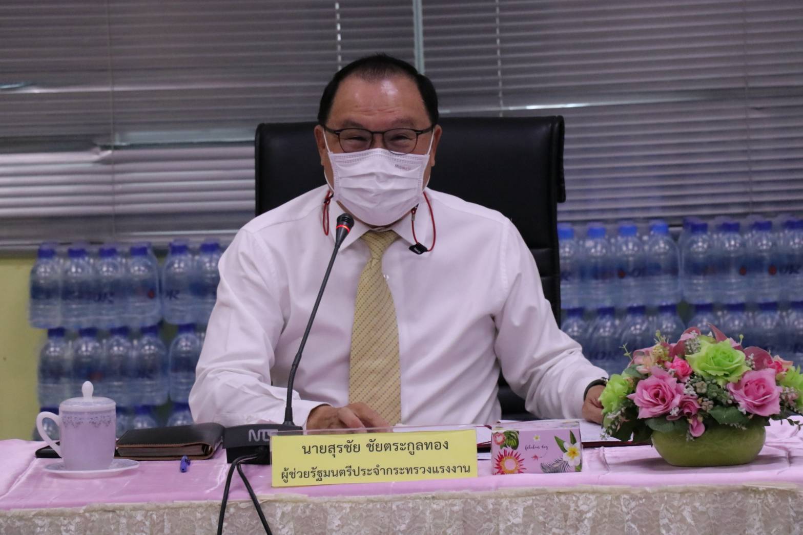 วันที่ ๒๐ เมษายน ๒๕๖๔ เวลา ๑๐.๓๐ น. นายสุรชัย ชัยตระกูลทอง ผู้ช่วยรัฐมนตรีประจำกระทรวงแรงงาน เป็นประธานการประชุมร่วมกับฝ่ายปกครอง หัวหน้าส่วนราชการของจังหวัด และรพ.ในเครือข่ายในจังหวัดชลบุรี