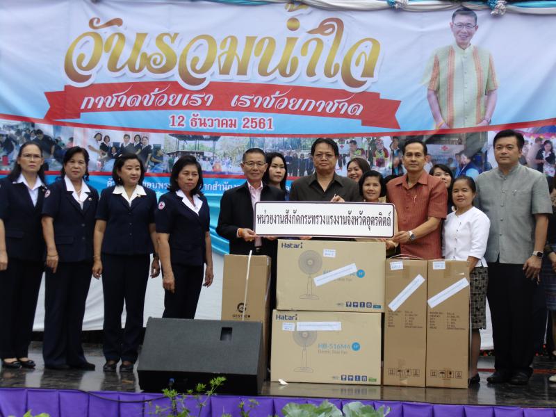 วันพุธที่ 12 ธันวาคม 2561 เวลา 09.00 น. นางสาวกฤษณา เขียวจันทร์แสง นักวิชาการแรงงานชำนาญการ รักษาราชการแทน แรงงานจังหวัดอุตรดิตถ์ พร้อมด้วยหัวหน้าส่วนราชการสังกัดกระทรวงแรงงานจังหวัดอุตรดิตถ์ ร่วมวันรวมนำ้ใจกาชาดช่วยเรา เราช่วยกาชาด ประจำปี 2562 ณ บริเวณจวนผู้ว่าราชการจังหวัดอุตรดิตถ์ อำเภอเมืองอุตรดิตถ์ โดยมีนายธนากร อึ้งจิตรไพศาล ผู้ว่าราชการจังหวัดอุตรดิตถ์ ผู้รับมอบ