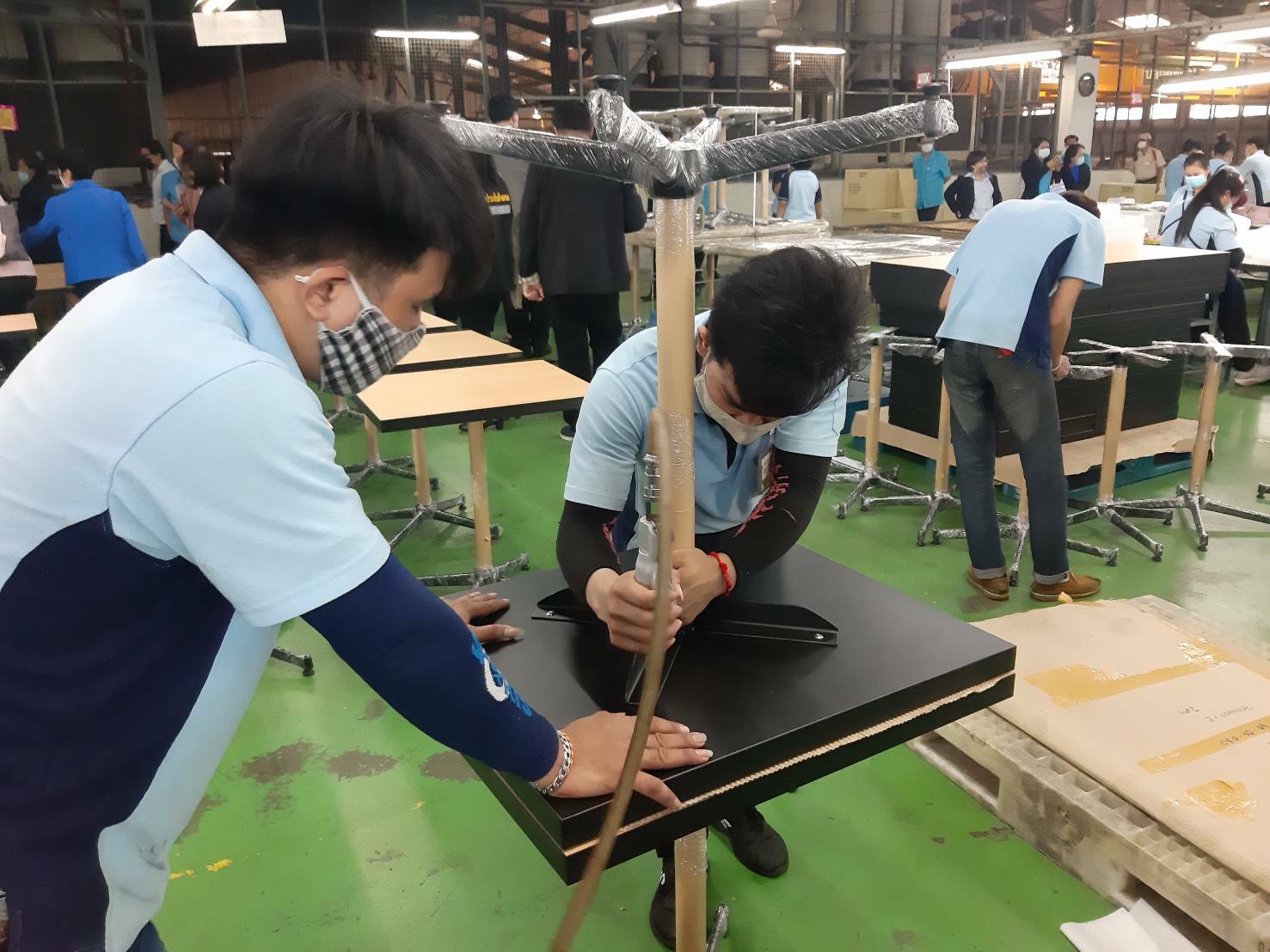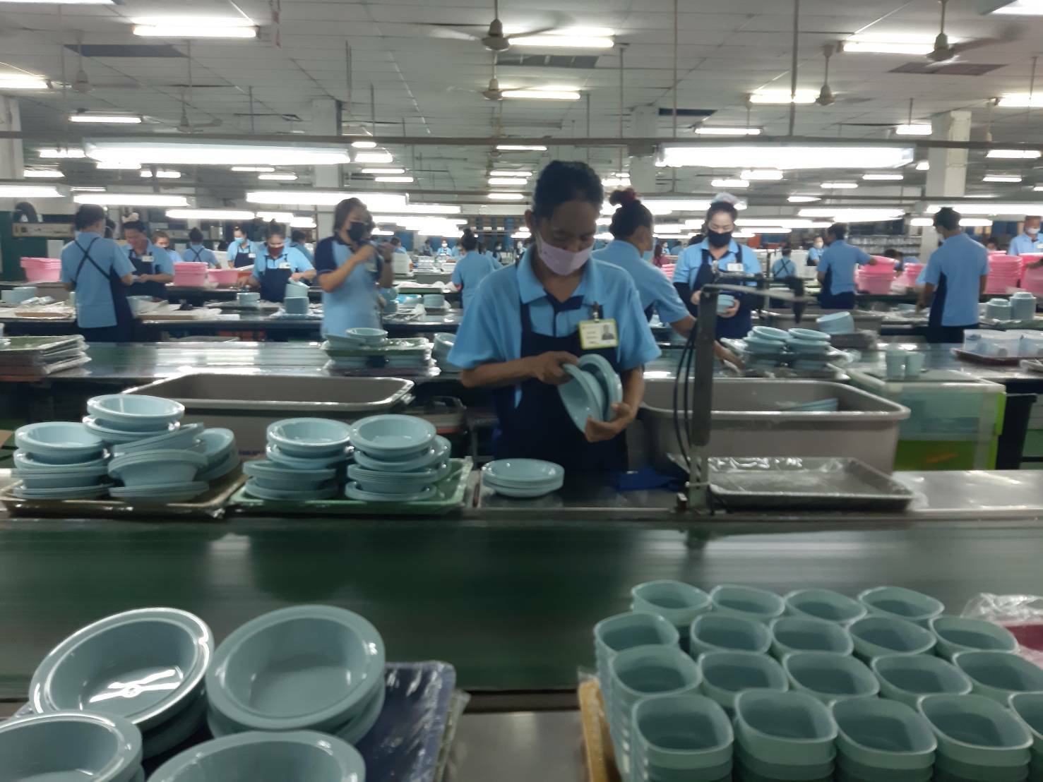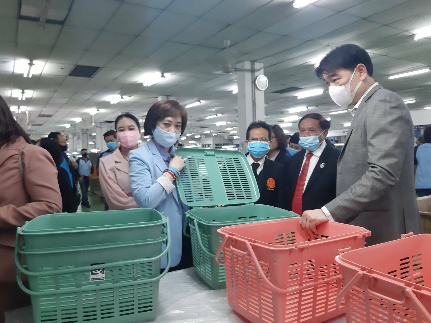 ช่วงบ่ายได้เดินทางไปเยี่ยมชมบริษัท ไพโอเนียอินดัสเตรียล จำกัด ณ ศูนย์อุตสาหกรรมเรืองวา จ.ฉะเชิงเทรา ซึ่งผลิตเครื่องใช้พลาสติกในครัวเรือน เครื่องใช้สำนักงาน และเฟอร์นิเจอร์ ส่งขายทั้งในและนอกประเทศ มีการจ้างงาน รวม 859 คน เป็น คนไทย จำนวน 464 คน และแรงงานกัมพูชา 395 คน เป็นสถานประกอบกิจการที่ให้ความสำคัญต่อการป้องกันการติดโควิด-19 เป็นอย่างมาก ได้ส่งแรงงานกัมพูชา เข้าอบรมกับสำนักงานสาธารณสุขจังหวัดฉะเชิงเทรา และแต่งตั้งเป็น อสส.ด้วย ทั้งนี้บริษัทมี อสส.เพื่อทำหน้าที่ในการเผยแพร่ความรู้ และติดตามข้อมูลด้านโควิดในกลุ่มเพื่อนๆแรงงานต่างด้าวด้วยกันภายในบริษัท จำนวน 10 คน บริษัท มีการดำเนินการมาตรการต่างๆอย่างจริงจัง ตั้งแต่ก่อนเข้าโรงงาน มีอ่างล้างมือ ซุ้มพ่นยา การใช้หน้ากากอนามัย การเว้นระยะห่างทางสังคม เป็นต้น ถึงแม้บริษัทจะประสบปัญหาด้านคำสั่งซื้อจากสถานการณ์โควิด-19 แต่บริษัทไม่ได้เลือกใช้การปิดงาน หรือหยุดกิจการตาม ม.75 แต่ใช้วิธีร่วมกันลดค่าใช้จ่ายของบริษัท และตกลงกำหนดเกณฑ์ร่วมกันในการลดเงินเดือนเพื่อไม่ให้ลูกจ้างคนใดคนหนึ่งต้องถูกบริษัทเลิกจ้างในสถานการณ์เช่นนี้