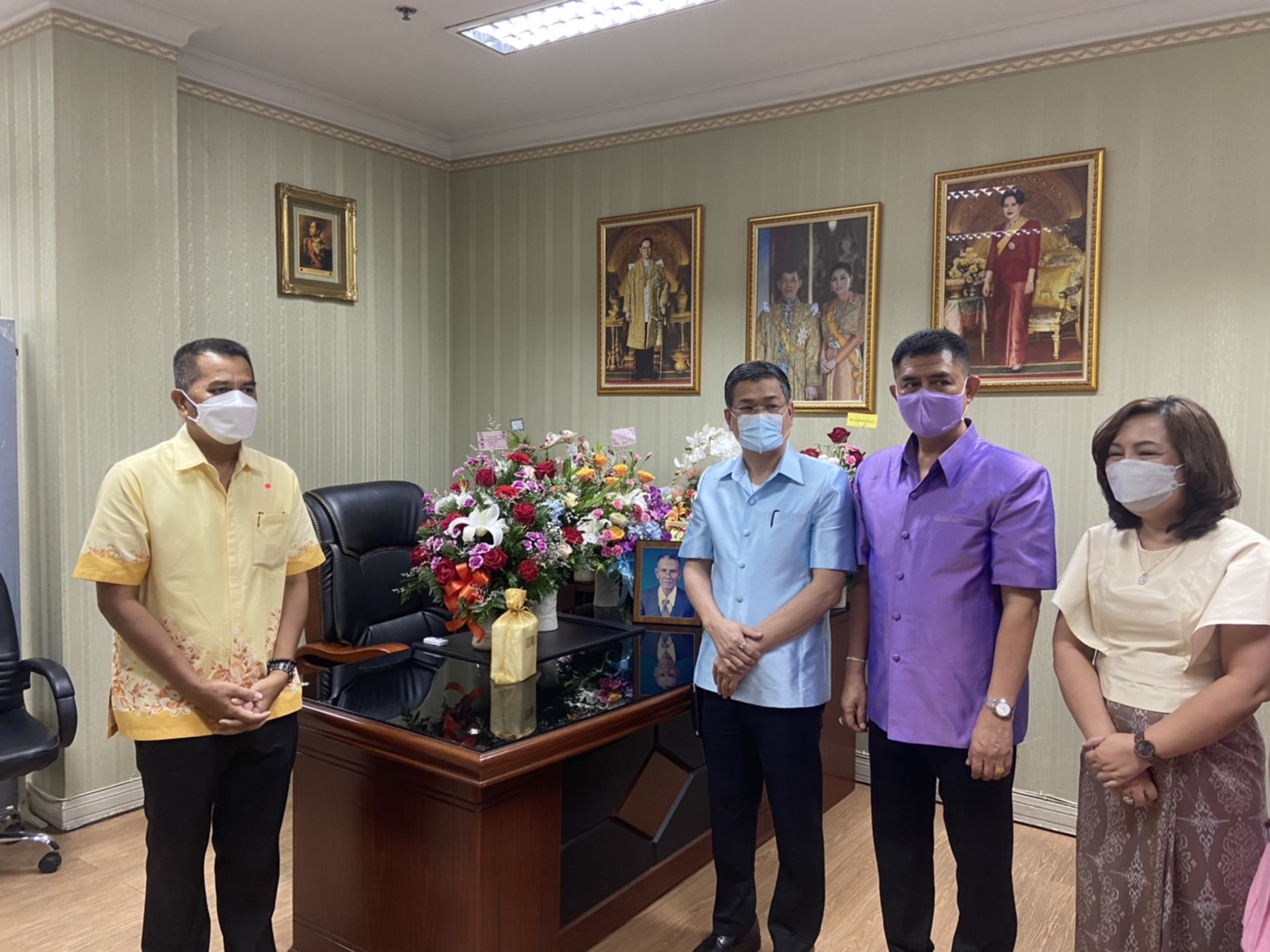 วันที่ 23 พฤศจิกายน 2564 นายวิชิตร สุวรรณมาก แรงงานจังหวัดนนทบุรี พร้อมด้วย นายสุกิจ ครุฑคง สวัสดิการและคุ้มครองแรงงานจังหวัดนนทบุรี นางชวนพิศ วิระวงษ์นุสร ประกันสังคมจังหวัดนนทบุรี ผู้แทนจัดหางานจังหวัดนนทบุรี ผู้แทนผู้อำนวยการสำนักงานพัฒนาฝีมือแรงงานนนทบุรี และเจ้าหน้าที่หน่วยงานสังกัดกระทรวงแรงงานจังหวัดนนทบุรี ร่วมแสดงความยินดี ท่านราชันย์ ซุ้นหั้ว ในโอกาสเข้ารับตำแหน่งรองผู้ว่าราชการจังหวัดนนทบุรี ณ ห้องปฏิบัติราชการรองผู้ว่าราชการจังหวัดนนทบุรี