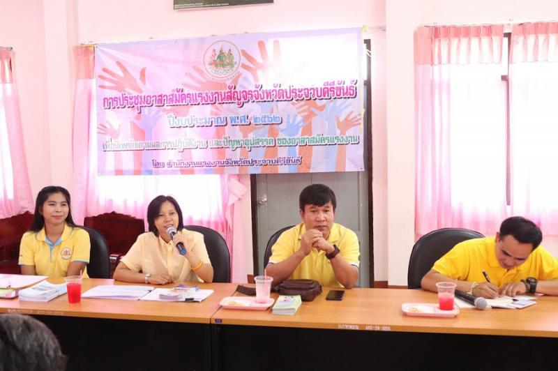 วันที่ 14 พฤษภาคม 2562 นางสาวมยุรี อินต๊ะมา นักวิชาการแรงงานชำนาญการ รักษาราชการแทนแรงงานจังหวัดประจวบคีรีขันธ์ พร้อมด้วยพี่เลี้ยงอาสาสมัครแรงงาน ออกตรวจนิเทศการปฏิบัติงานของอาสาสมัครแรงงานและเครือข่ายด้านแรงงาน ตามโครงการประชุมอาสาสมัครแรงงานสัญจรจังหวัดประจวบคีรีขันธ์ ประจำปีงบประมาณ พ.ศ. 2562 เพื่อติดตามผลการปฏิบัติงาน พร้อมทั้งรับฟังปัญหาอุปสรรคในการปฏิบัติงานของอาสาสมัครแรงงาน ณ ห้องประชุมองค์การบริหารส่วนตำบลหาดขาม อำเภอกุยบุรีและ ห้องประชุมสำนักงานเทศบาลตำบลไร่ใหม่ อำเภอสามร้อยยอด จังหวัดประจวบคีรีขันธ์ ทั้งนี้ หน่วยงานในสังกัดกระทรวงแรงงานได้ชี้แจงภารกิจของแต่ละหน่วยงานให้ผู้ร่วมประชุมทราบ