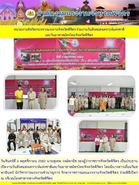 หน่วยงานสังกัดกระทรวงแรงงานจังหวัดพิจิตร ร่วมงานวันสังคมสงเคราะห์แห่งชาติ และวันอาสาสมัครไทยจังหวัดพิจิตร