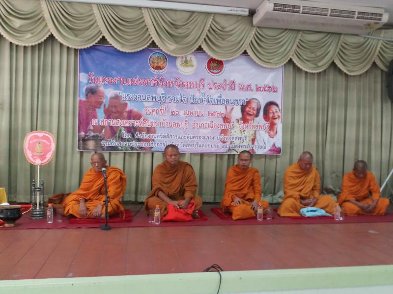 วันศุกร์ที่ 26 เมษายน 2562 : 09.00 น. นางสาวปาริชาติ สวนใจ แรงงานจังหวัดอุตรดิตถ์ รักษาราชการแทน แรงงานจังหวัดลพบุรี พร้อมด้วย เจ้าหน้าที่สำนักงานแรงงานจังหวัดลพบุรี และอาสาสมัครแรงงานจังหวัดลพบุรี ร่วมกิจกรรมวันแรงงานแห่งชาติจังหวัดลพบุรี ประจำปี พ.ศ.2562 จัดโดย สำนักงานสวัสดิการและคุ้มครองแรงงานจังหวัดลพบุรี และเวลา 11.00 น. นายสุปกิต โพธิ์ปภาพันธ์ ผู้ว่าราชการจังหวัดลพบุรี เป็นประธานเปิดงาน วันแรงงานแห่งชาติจังหวัดลพบุรี ประจำปี พ.ศ.2562 ณ สถานสงเคราะห์คนชราบ้านลพบุรี อำเภอเมือง จังหวัดลพบุรี
