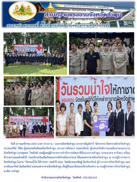 หน่วยงานสังกัดกระทรวงแรงงานจังหวัดลำพูน ร่วมบริจาคเงินเพื่อเป็นของรางวัลร้านมัจฉากาชาดให้แก่เหล่ากาชาดจังหวัดลำพูน