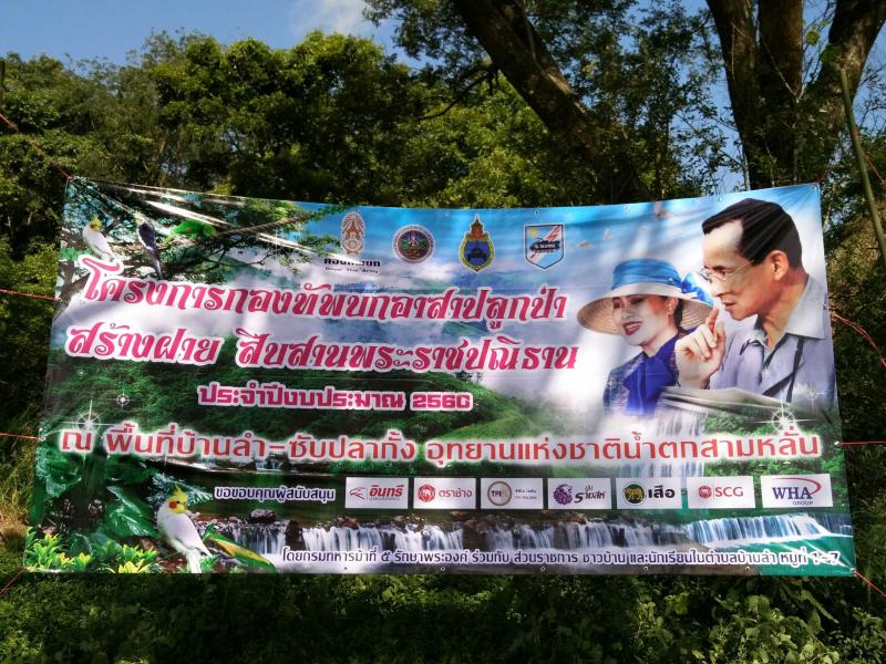 เมื่อวันที่ 2 สิงหาคม 2560 ที่บริเวณอ่างเก็บน้ำซับปลากั้ง อุทยานแห่งชาติน้ำตกสามหลั่น ต.บ้านลำ อ.วิหารแดง จ.สระบุรี นายบัณฑิตย์ เทวีทิวารักษ์ ผู้ว่าราชการจังหวัดสระบุรี เป็นประธานเปิด โครงการ”กองทัพบกอาสา ปลูกป่า สร้างฝาย สืบสานพระราชปณิธานฯ "ตามรอยพ่อของแผ่นดิน โดยมีหน่วยงานสังกัดกระทรวงแรงงานจังหวัดสระบุรี หน่วยงานราชการทหาร นักเรียน ชาวบ้านในพื้นที่ ร่วมกิจกรรมปลูกป่า 20,000 ต้น และกิจกรรมสร้างฝายชะลอน้ำจำนวน 150 ฝาย ซึ่งกรมทหารม้าที่ 5 รักษาพระองค์ได้ดำเนินโครงการ "ทบ.อาสาปลูกป่า สร้างฝาย สืบสาน พระราชปณิธานฯ” โดยมีวัตถุประสงค์เพื่อสืบสานพระราชปณิธานของพระบาทสมเด็จพระเจ้าอยู่หัวรัชกาลที่ 9 ในเรื่องการอนุรักษ์ทรัพยากรธรรมชาติและสิ่งแวดล้อม และเพื่อให้ประชาชนมีส่วนร่วมและปลูกจิตสำนึกร่วมเสริมสร้างป่าชุ่มชื้นและมีการชะลอน้ำไว้บำรุงพื้นป่า เพื่อเป็นตอบแทนคุณและสำนึกในพระมหากรุณาธิคุณ