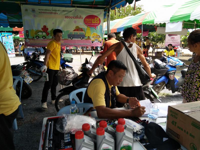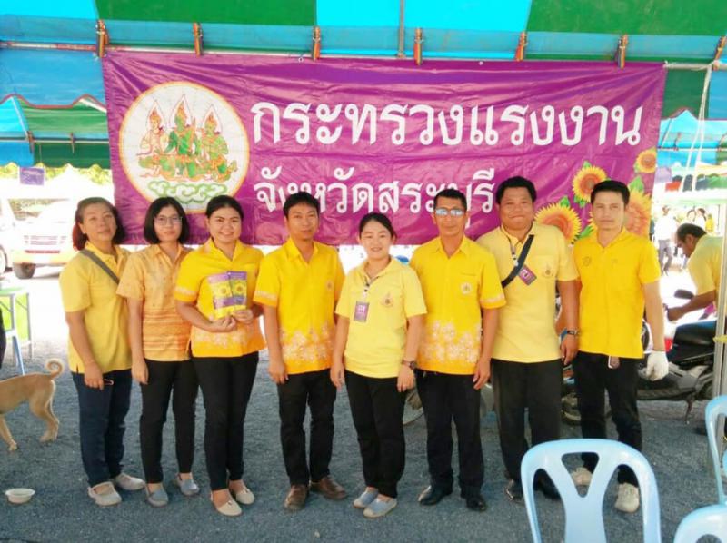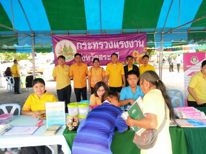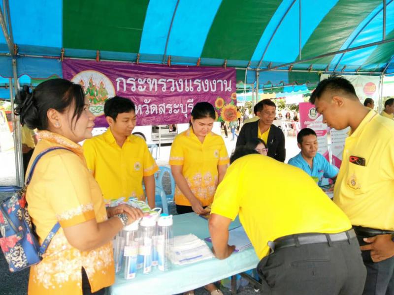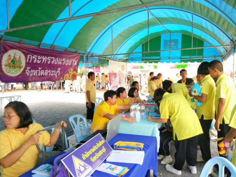 วันที่ 19 มิภุนายน 2562 เวลา 08.30 น. นางสาวรัตนา ทองกลับ แรงงานจังหวัดสระบุรี นายพิเชษฐ์ ทองพันธ์ จัดหางานจังหวัดสระบุรี และนายจรัลรัตน์ สุววรณวัฒน์ ผู้อำนวยการสำนักงานพัฒนาฝีมือแรงงานสระบุรี พร้อมด้วยเจ้าหน้าที่หน่วยงานสังกัดกระทรวงแรงงานจังหวัดสระบุรี และศูนย์ช่างประจำชุมชนเทิดไท้องค์ราชันบูรณาการร่วมจัดกิจกรรมหน่วยบำบัดทุกข์ บำรุงสุข สร้างรอยยิ้มประชาชน ภายในงานมีนิทรรศการให้ความรู้กฎหมายแรงงาน ตำแหน่งงานว่าง บริการซ่อมบำรุงยานพาหนะ (เปลี่ยนถ่ายน้ำมันเครื่องรถจักรยานยนต์) และบริการสมัครประกันสังคม มาตรา 40 ซึ่งมีประชาชนเข้าร่วมกิจกรรมเป็นจำนวนมาก ณ บริเวณวัดมณีโชติ หมู่ที่ 1 ตำบลแสลงพัน อำเภอวังม่วง จังหวัดสระบุรี โดยมีนายแมนรัตน์ รัตนสุคนธ์ ผู้ว่าราชการจังหวัดสระบุรี เป็นประธาน
