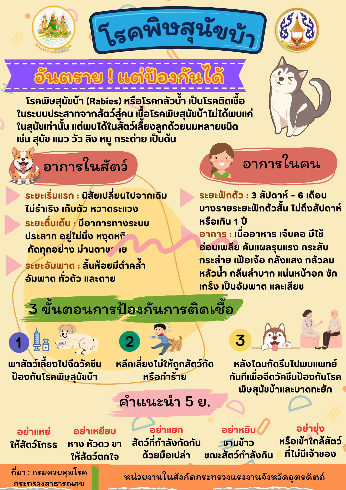 หน่วยงานสังกัดกระทรวงแรงงานจังหวัดอุตรดิตถ์ ขอประชาสัมพันธ์โรคพิษสุนัขบ้า