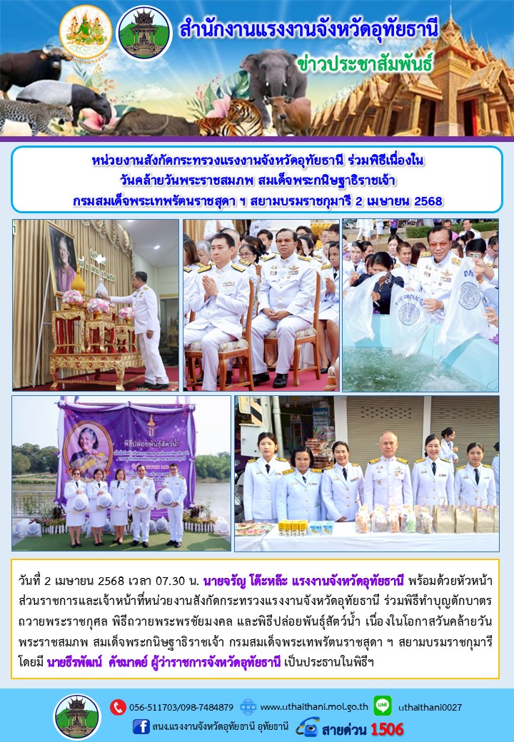 หน่วยงานสังกัดกระทรวงแรงงานจังหวัดอุทัยธานี ร่วมพิธีเนื่องใน วันคล้ายวันพระราชสมภพ สมเด็จพระกนิษฐาธิราชเจ้า กรมสมเด็จพระเทพรัตนราชสุดา ฯ สยามบรมราชกุมารี 2 เมษายน 2568