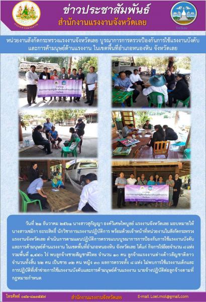 หน่วยงานสังกัดกระทรวงแรงงานจังหวัดเลย บูรณาการการตรวจป้องกันการใช้แรงงานบังคับ และการค้ามนุษย์ด้านแรงงาน ในเขตพื้นที่อำเภอหนองหิน จังหวัดเลย