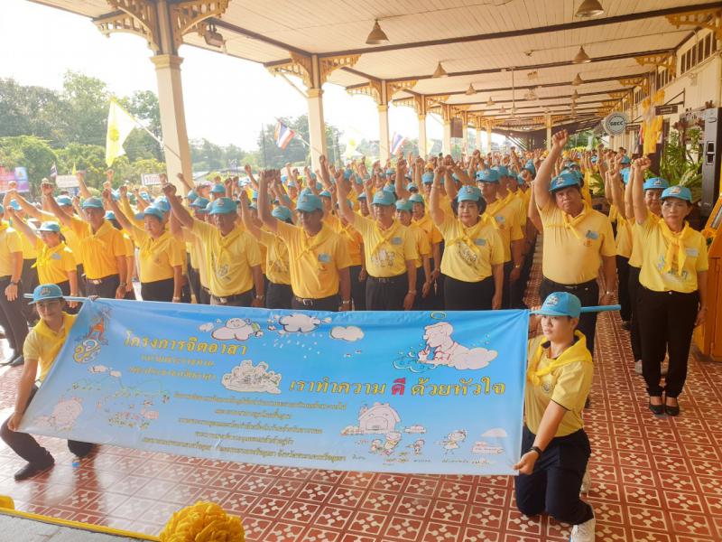 วันพุธที่ 23 ตุลาคม 2562 เวลา 10.00 น. หน่วยงานสังกัดกระทรวงแรงงาน จังหวัดพระนครศรีอยุธยา ร่วมกิจกรรมจิตอาสาถวายเป็นพระราชกุศล โดยมีผู้ว่าราชการจังหวัด นายภานุ แย้มศรี นำจิตอาสาพระราชทานปรับภูมิทัศน์ ทำความสะอาดเส้นทางรถไฟ เนื่องในวันคล้ายวันสวรรคตพระบาทสมเด็จ พระจุลจอมเกล้าเจ้าอยู่หัว ณ สถานีรถไฟอยุธยา อำเภอพระนครศรีอยุธยา โดยมีหัวหน้าส่วนราชการ ข้าราชการ จิตอาสาพระราชทาน 904 วปร. และประชาชนจิตอาสาร่วมกิจกรรมเป็นจำนวนมาก โดยได้ร่วมกันทาสีขอบทางรถไฟ ป้ายชื่อสถานีรถไฟ เก็บกวาดทำความสะอาดรางรถไฟและพื้นที่บริเวณโดยรอบสถานีรถไฟอยุธยา