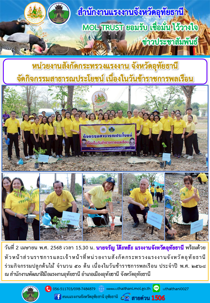 หน่วยงานสังกัดกระทรวงแรงงาน จังหวัดอุทัยธานี จัดกิจกรรมสาธารณประโยชน์ เนื่องในวันข้าราชการพลเรือน