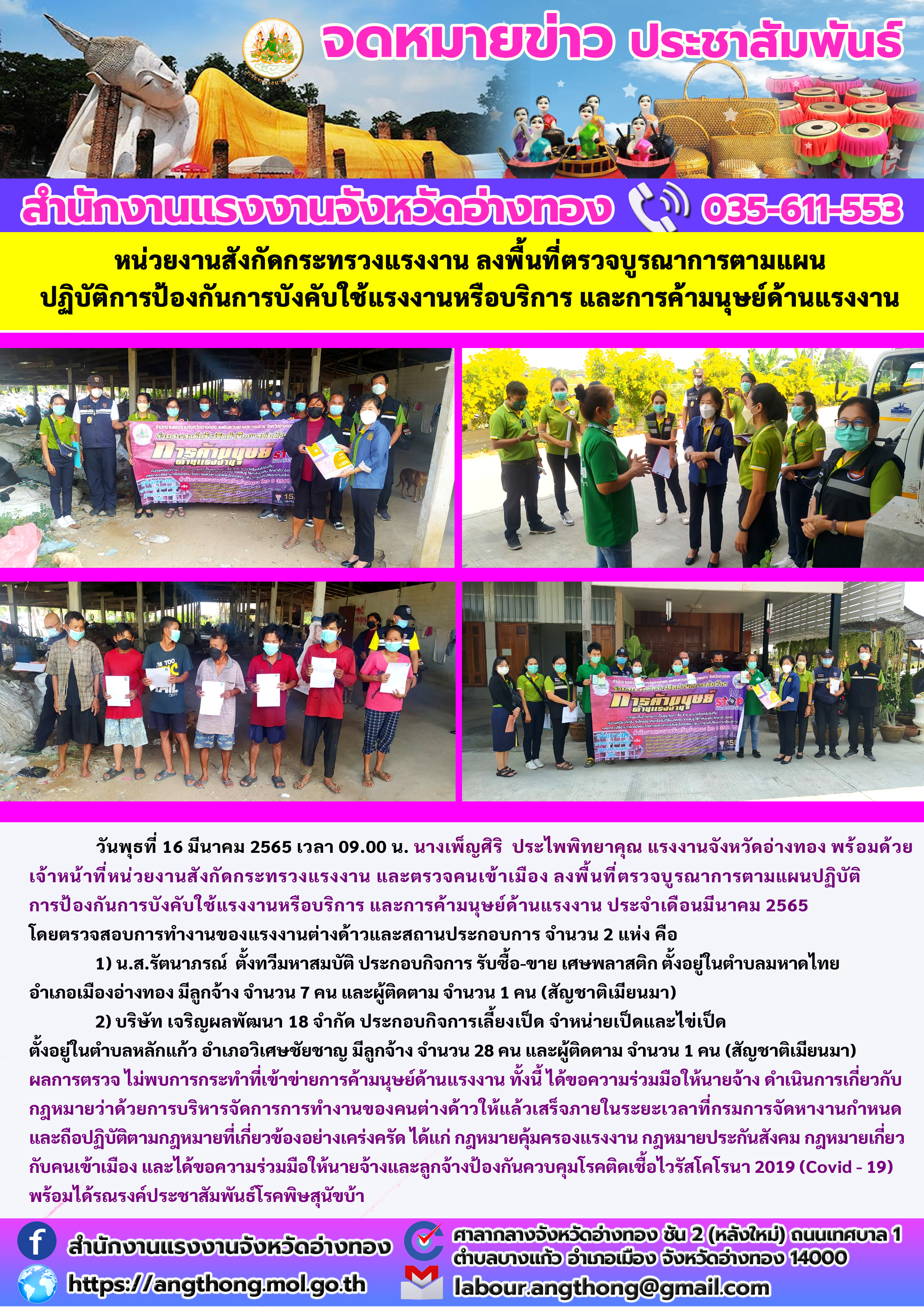 หน่วยงานสังกัดกระทรวงแรงงาน ลงพื้นที่ตรวจบูรณาการตามแผน ปฏิบัติการป้องกันการบังคับใช้แรงงานหรือบริการ และการค้ามนุษย์ด้านแรงงาน