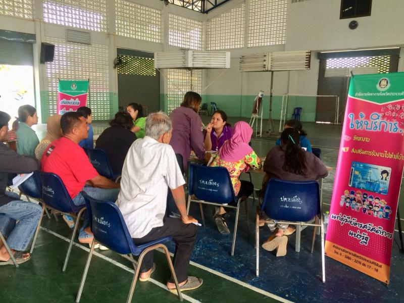 วันที่ 27 มิถุนายน 2561 เวลา 09.00 น. หน่วยงานสังกัดกระทรวงแรงงาน ลงพื้นที่พบผู้มีรายได้น้อยที่ลงทะเบียนสวัสดิการแห่งรัฐ ที่แจ้งความต้องการด้านแรงงานจังหวัดประจวบคีรีขันธ์ เพื่อดำเนินการพัฒนาผู้มีบัตรฯ โดยทำการยืนยันความต้องการของผู้มีบัตรฯ/พบกลุ่มเป้าหมาย เพื่อให้บริการจัดหางานให้ทำ ให้บริการกลุ่มผู้รับงานไปทำที่บ้าน การเข้าถึงสิทธิประโยชน์ การประกันสังคม และยืนยันการฝึก หรือเปลี่ยนแปลงการฝึก นัดหมายการฝึก และชี้แจงทำความเข้าใจผู้เข้ารับการฝึก โดยมีปลัดอำเภอเมืองประจวบคีรีขันธ์ เป็นประธานกล่าวเปิดโครงการดังกล่าวฯ ณ ที่ว่าการอำเภอเมือง อำเภอเมืองฯ จังหวัดประจวบคีรีขันธ์